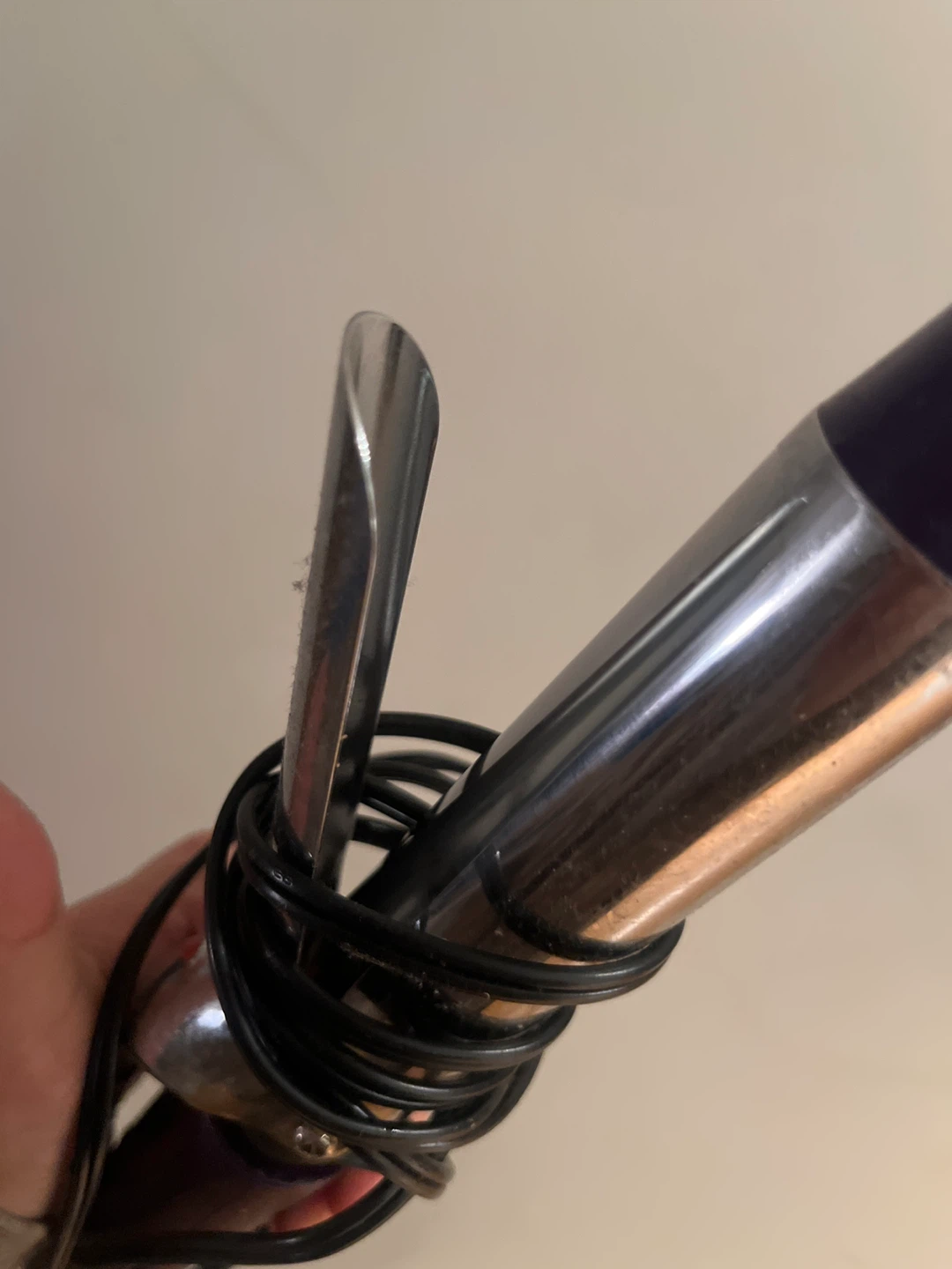Selling a Conair curling iron! It's in good condition and ready for a new home. It features a purple handle and a silver barrel.