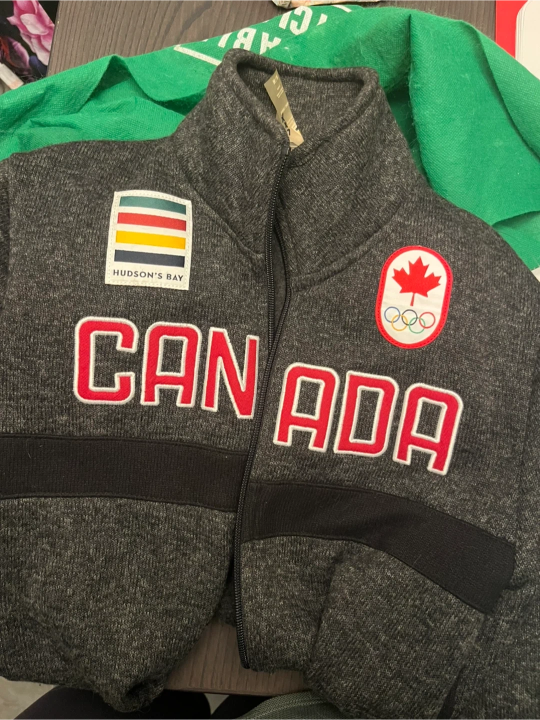 Selling a Hudson's Bay Canada Olympic zip-up jacket. It's in great condition and perfect for showing your Canadian pride! Features the iconic Hudson's Bay stripes and the Canadian Olympic logo.