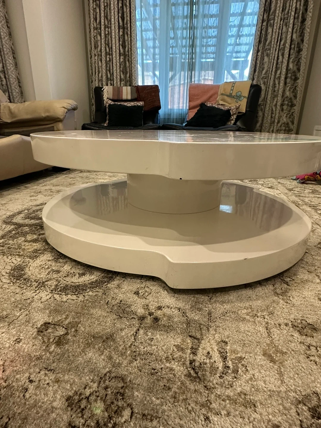 • Contemporary round design with a sturdy two-tier base