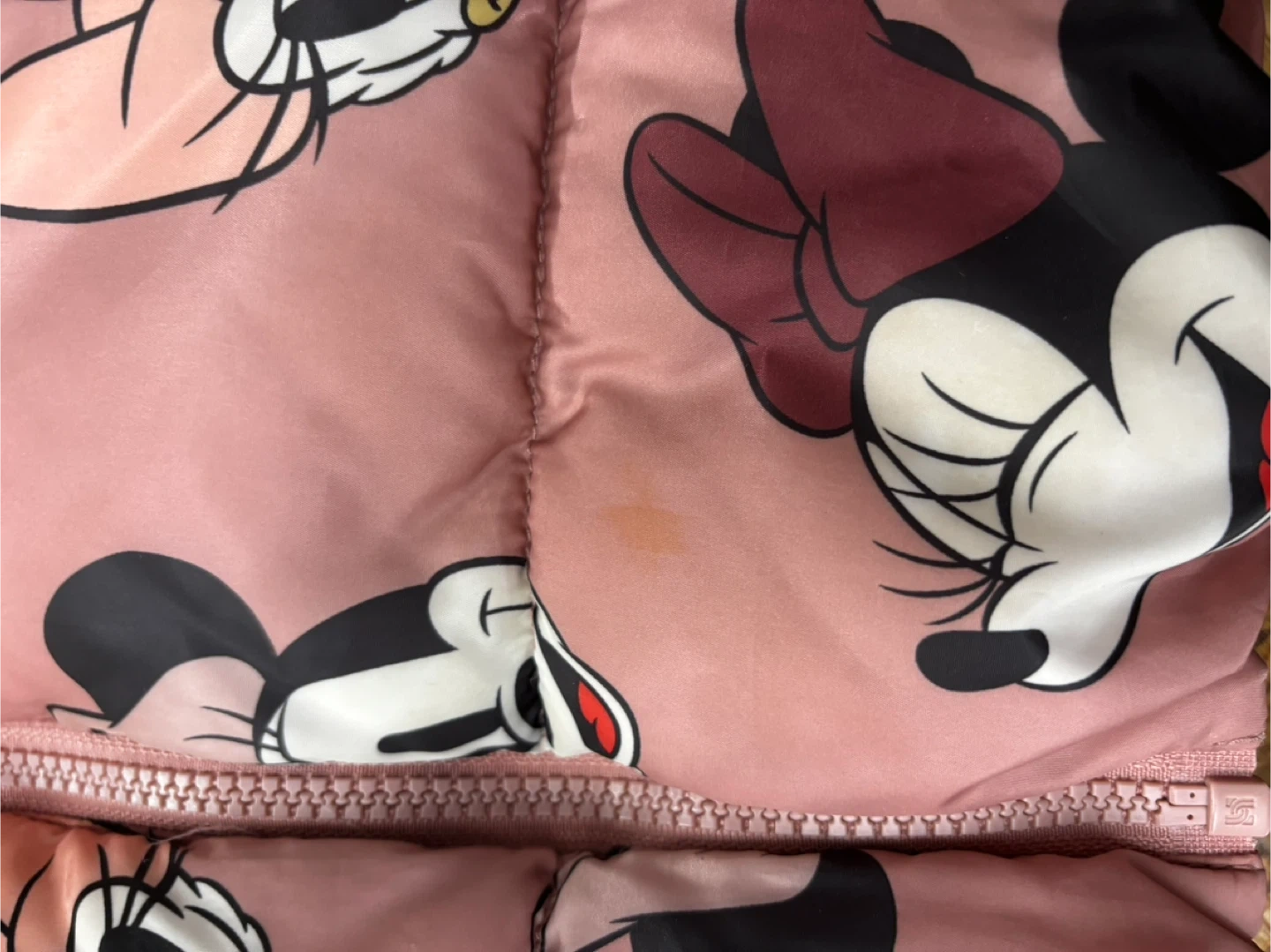 H&M Disney Minnie Mouse Puffer Jacket: Size 12-18M. In good condition but there is a small stain on the front of the jacket that I couldn’t get out.