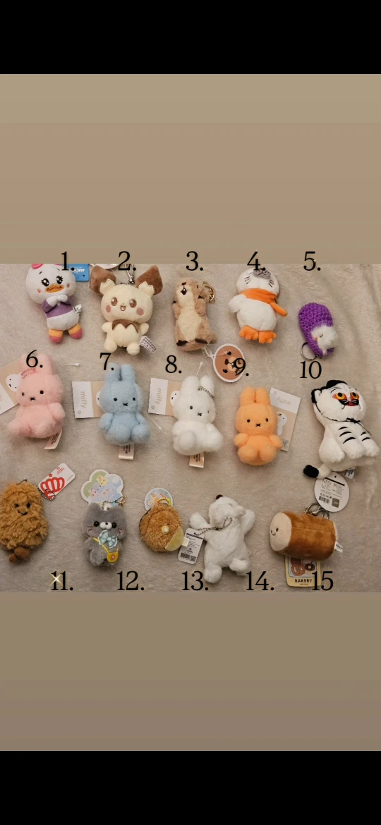 I have a selection of adorable plush keychains for sale! They're all in great condition (new) and ready to add some charm to your keys or bag. Take a look at the pictures and let me know which one catches your eye!