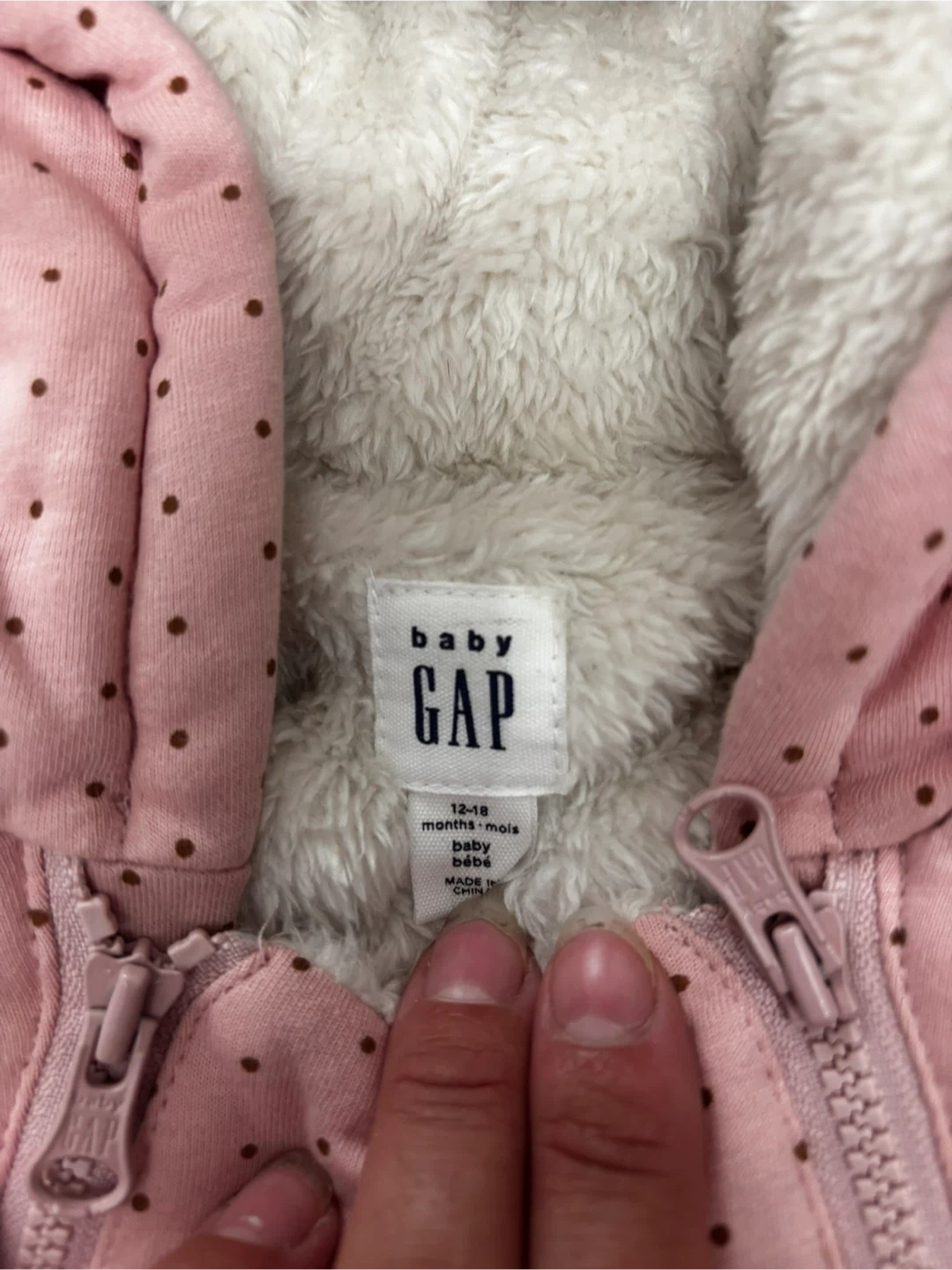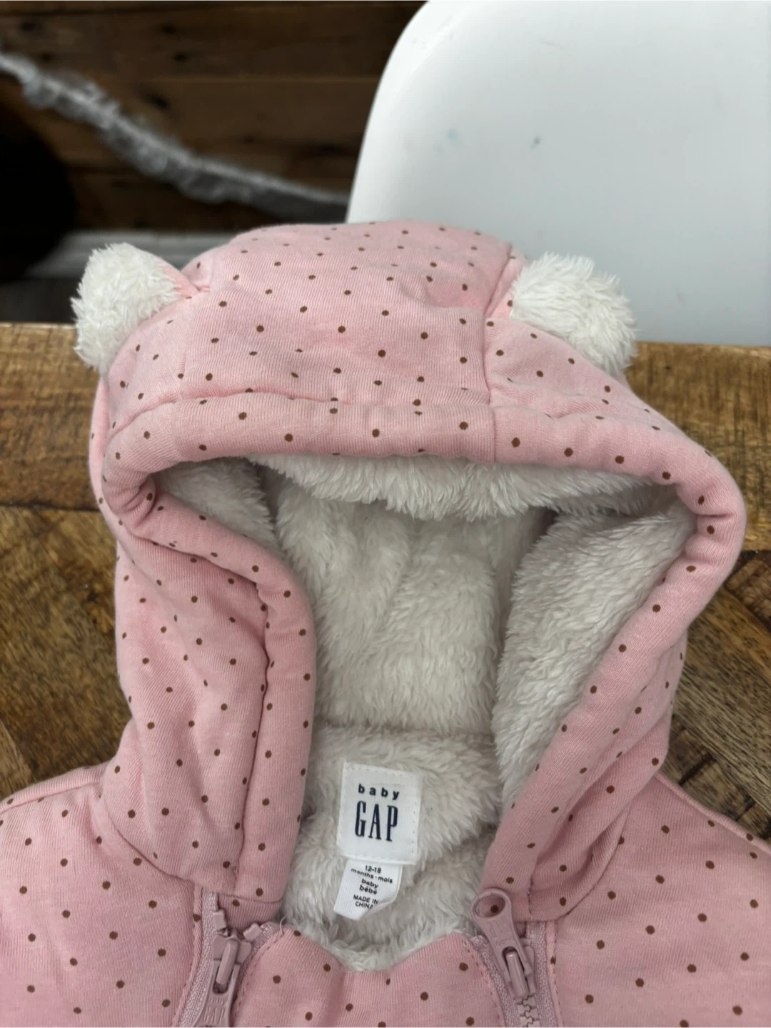 BabyGap pink snowsuit with polkadots. Size 12-18 months. In good condition.