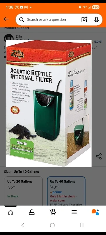 Prices are below, Selling a Zilla Aquatic Reptile Internal Filter, suitable for tanks up to 40 gallons. It efficiently cleans and filters water, processing 250 gallons per hour. The filter utilizes Patented Bio-filtration Technology, ensuring a healthy environment for your aquatic reptile. It's designed to be compatible with high carbon cartridges for superior filtration. The box is included! Brand New $48