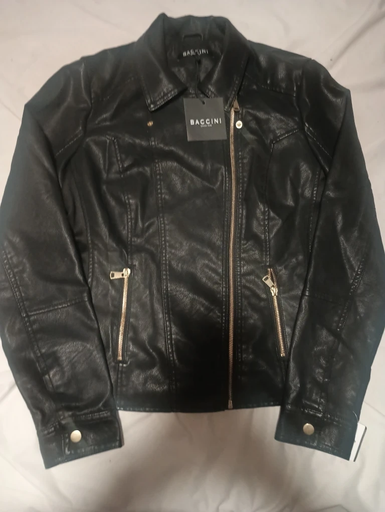 Here's a stylish black leather jacket from Baccini! It's a sleek and classic piece that would make a great addition to any wardrobe. More than happy to consider best offer!!!