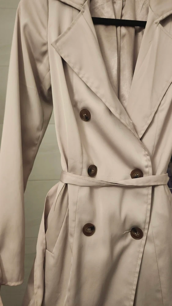 Selling a stylish Am+Su trench coat in a beautiful neutral colour. It's a size US/CA 4. This coat is perfect for adding a touch of elegance to any outfit!