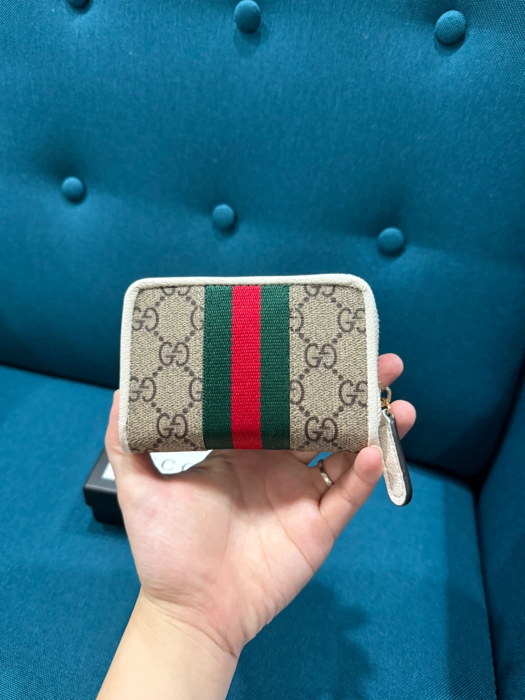 Selling a brand new Gucci GG Marmont card case wallet! It's in excellent condition and comes with its original box. The wallet features the iconic GG logo and the classic green and red stripe design. Perfect for keeping your cards and cash organized in style