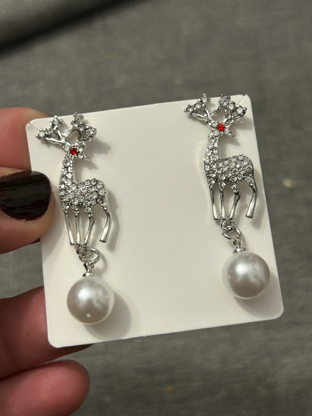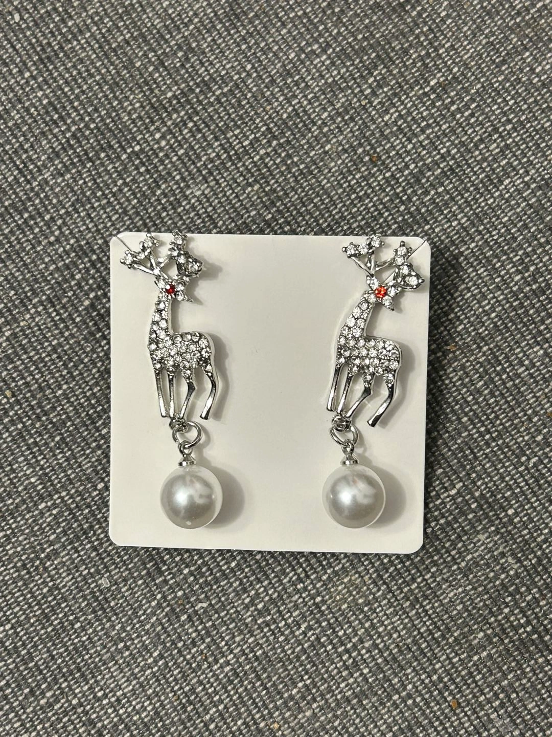 Reindeer earrings (NEW) with red stone and pearl