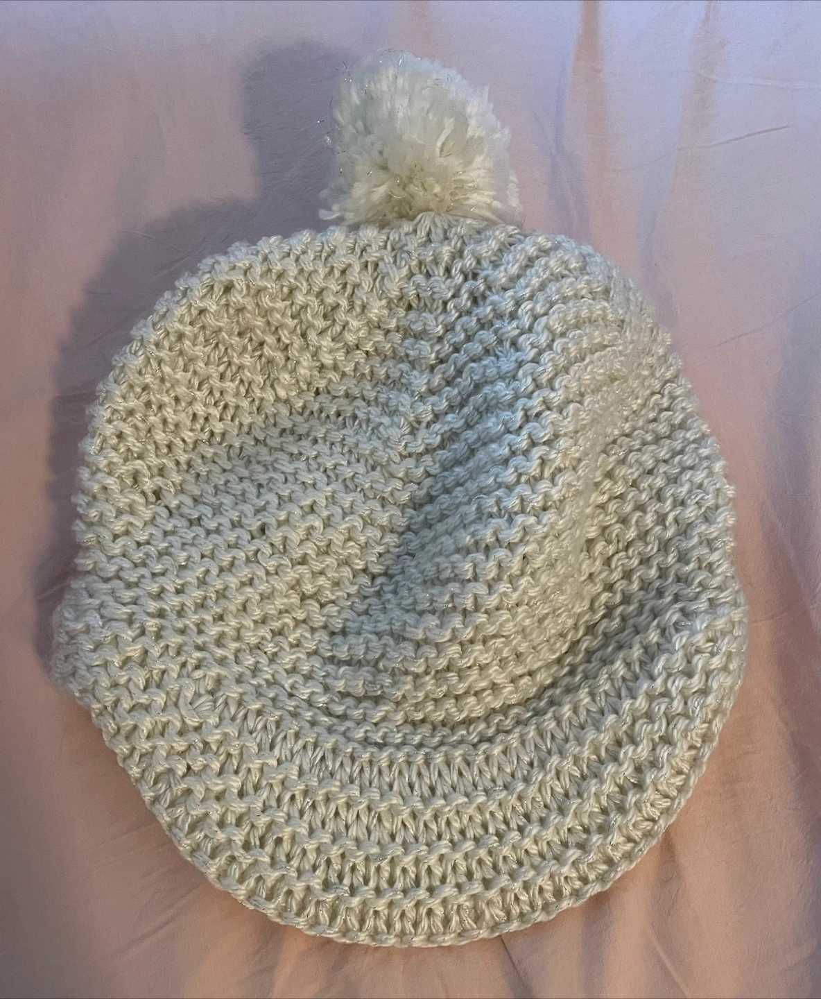 Cozy white knit newsboy style hat, complete with a cute pom pom on top! It's in great condition and ready to keep you warm and stylish