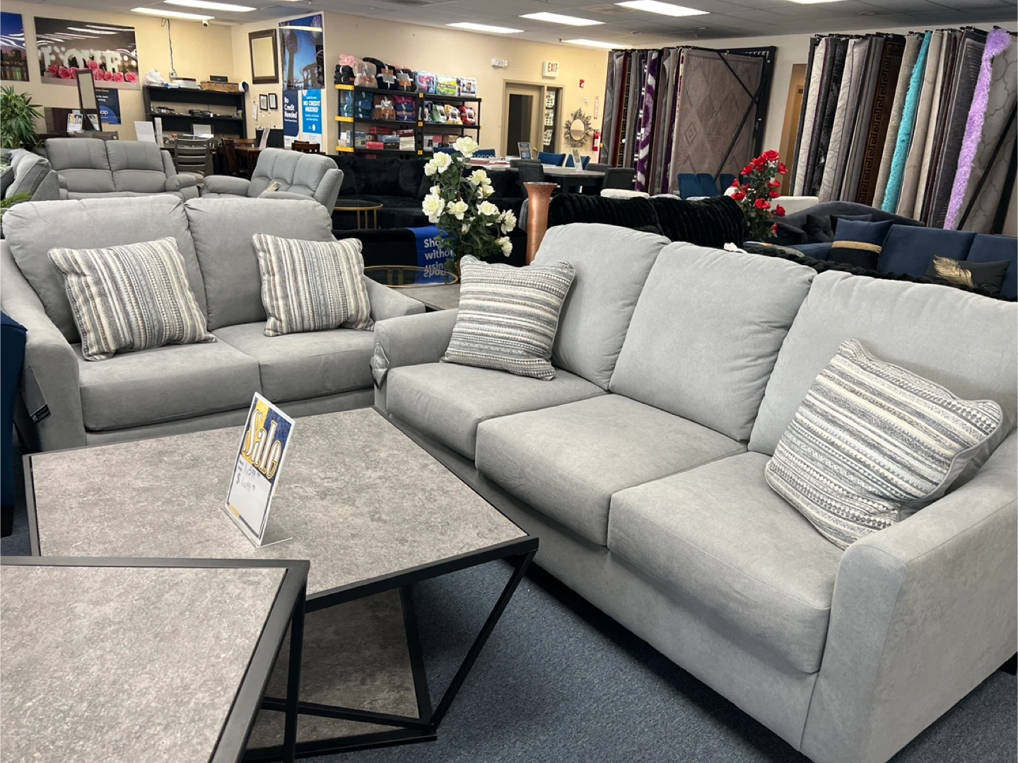 Selling a comfortable gray sofa and loveseat set. It's in good condition and ready for a new home! Perfect for a living room or family room setup. The neutral color will match any decor