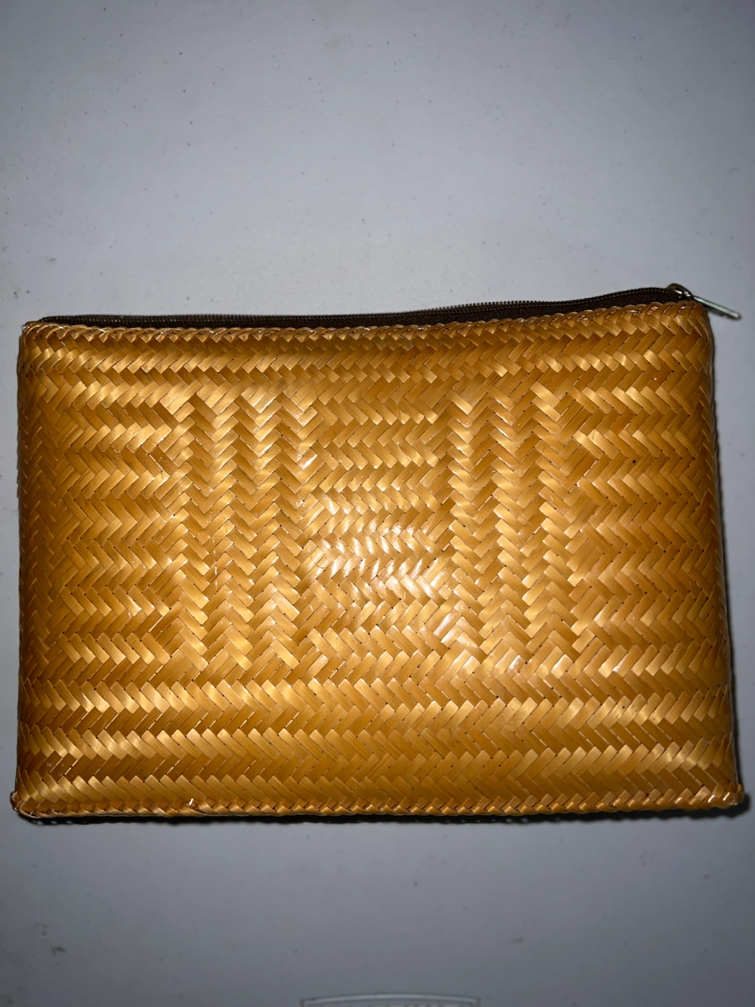 Selling a handwoven wicker pouch! It's in great condition and has a zipper closure. Perfect for carrying small items or as a makeup bag
