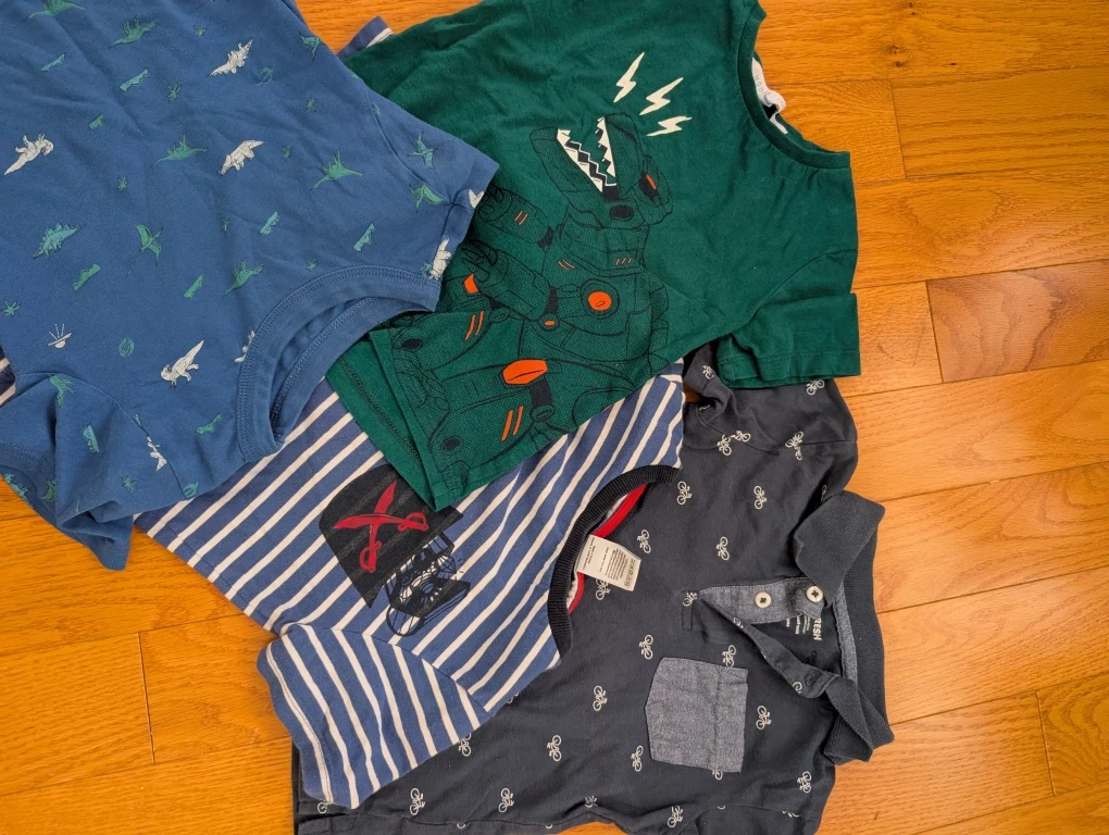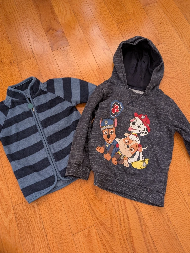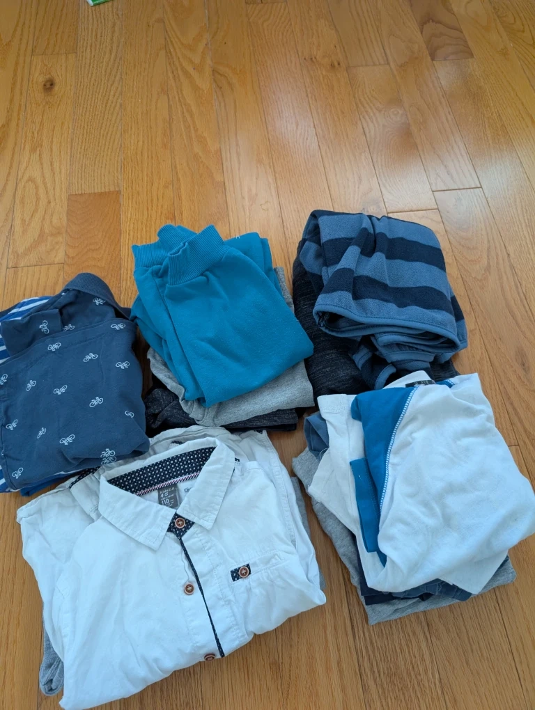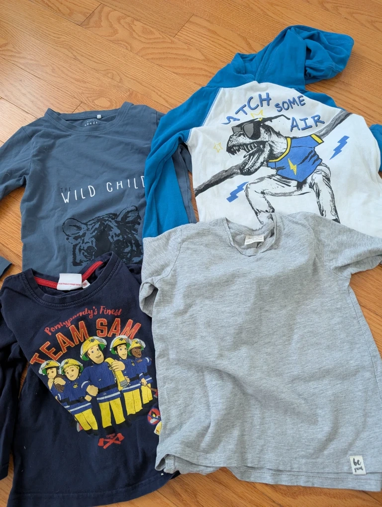 Selling a bundle of boys clothing with various styles and sizes! There are t-shirts, long-sleeved shirts, shorts, pants, and a couple of hoodies included. Great for filling out your little one's wardrobe with a variety of options.