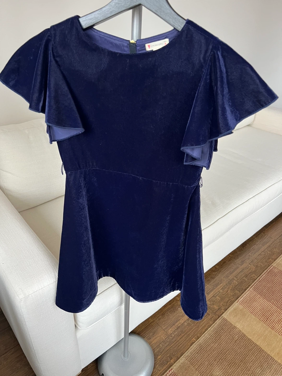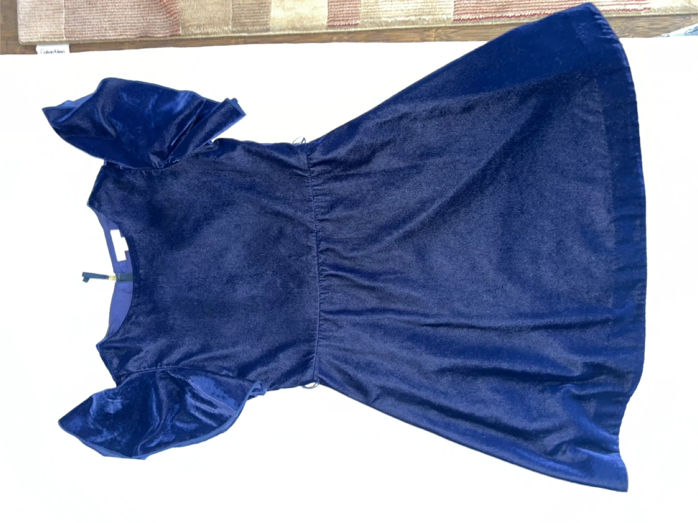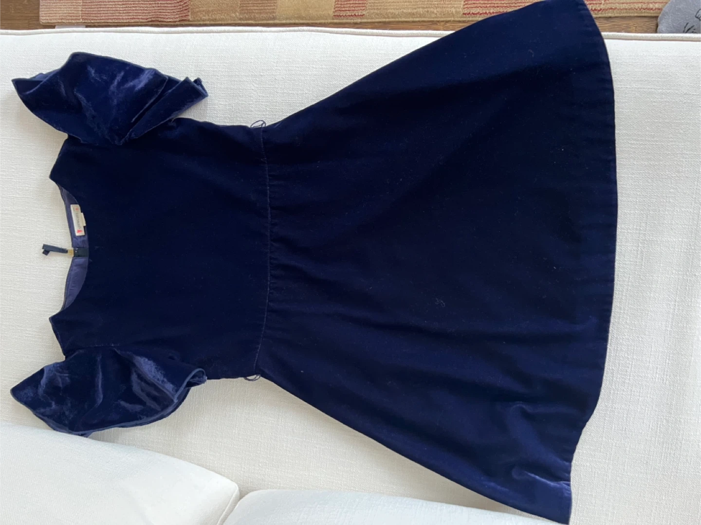 Crewcuts girls' velvet dress in a beautiful navy blue! It's in great condition and perfect for any special occasion or just to feel a little fancy. The dress features cute flutter sleeves and a classic A-line shape. Size 8.