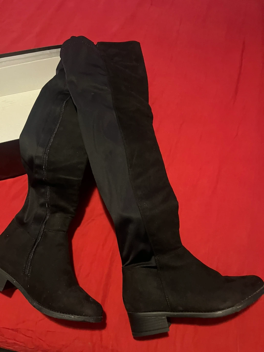 Selling a pair of black over-the-knee boots. They come with their original box. These boots are perfect for adding a touch of style to any outfit!