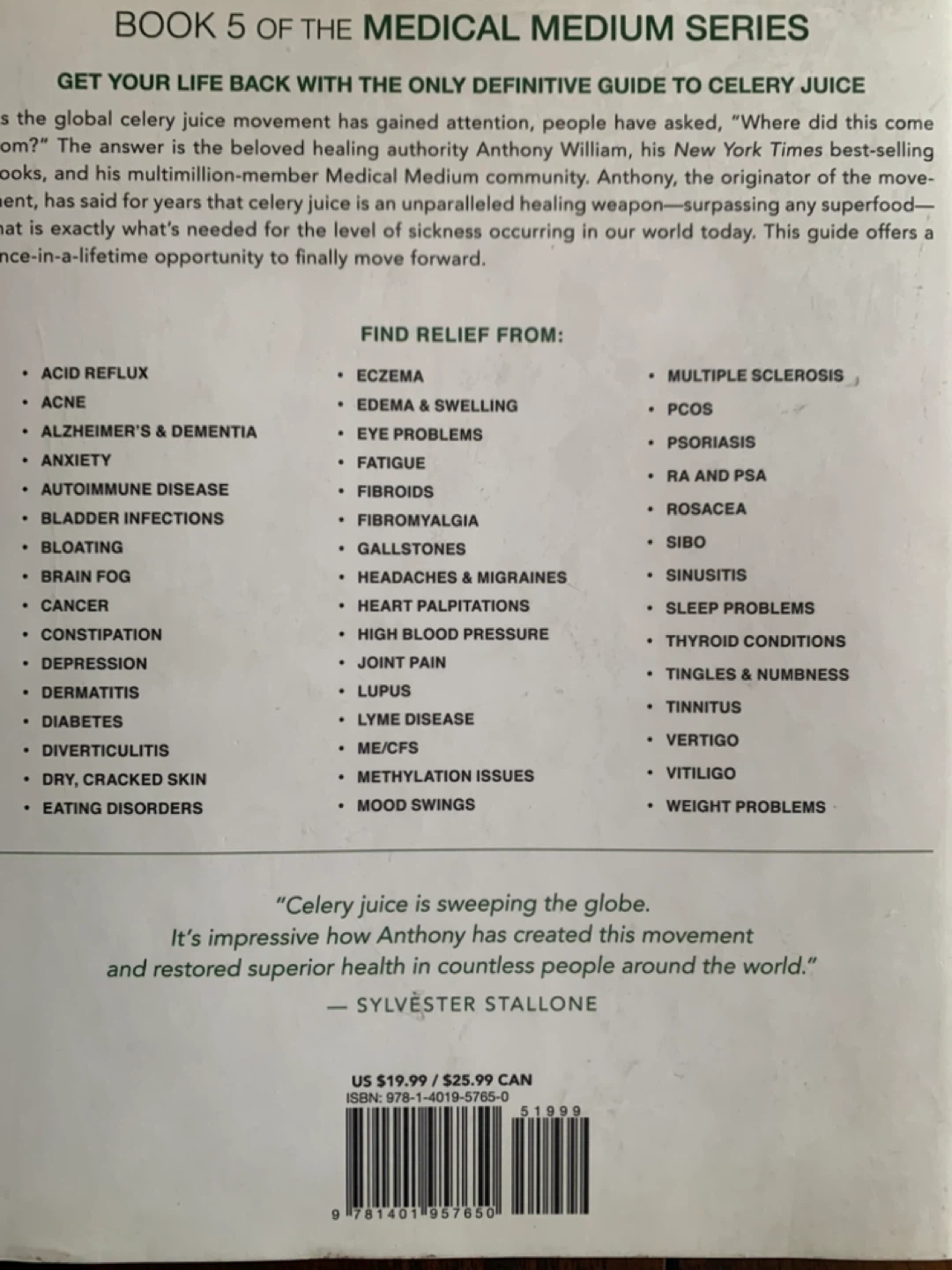 Selling 'Medical Medium Celery Juice: The Most Powerful Medicine of Our Time Healing Millions Worldwide' by Anthony William. This is Book 5 of the Medical Medium series. Originally priced at $25.99 CAN
