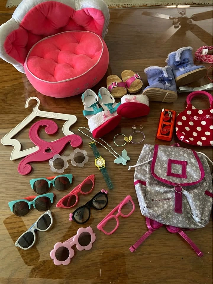 -AG shoes, necklace, watch, 2 rings, 2 BFF bracelets, headbands and 2 book bags.