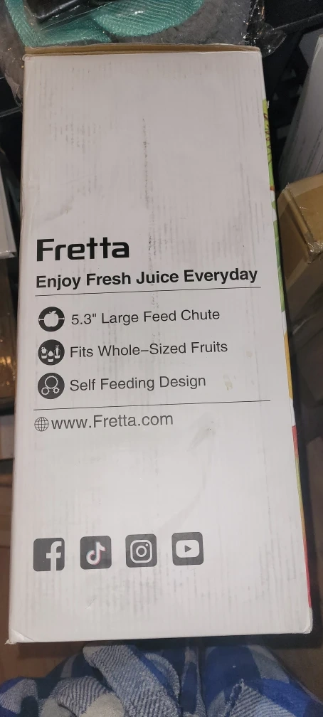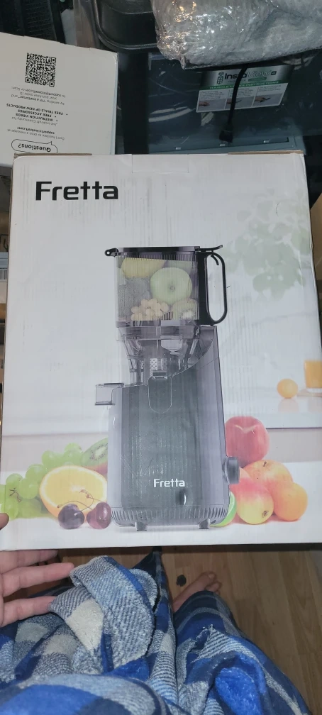 I'm selling a Fretta juicer that's ready to help you enjoy fresh juice every day! It features a 5.3" large feed chute, fits whole-sized fruits, and has a self-feeding design. The box is included!