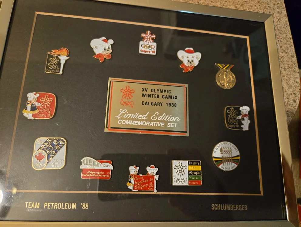 Selling a framed limited edition commemorative pin set from the XV Olympic Winter Games in Calgary 1988. It features various pins related to the Calgary Olympics, including the Olympic Saddledome and the Calgary '88 logo. A great piece of memorabilia for any Olympic or Calgary enthusiast!