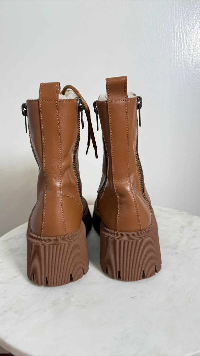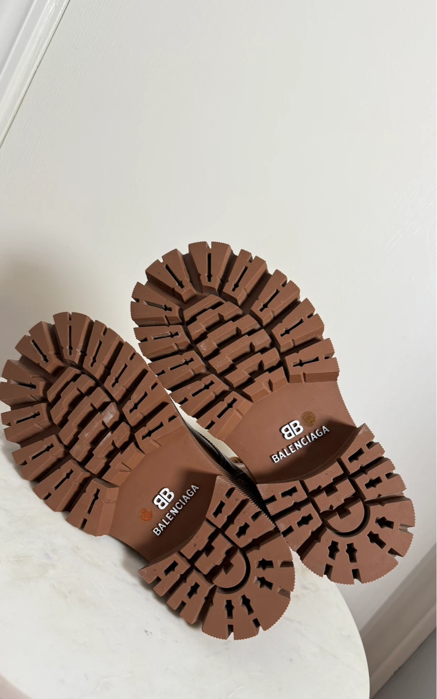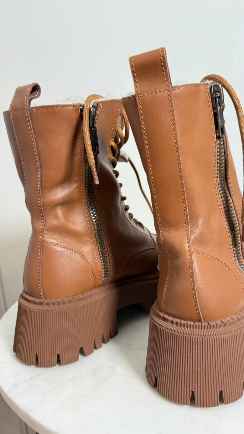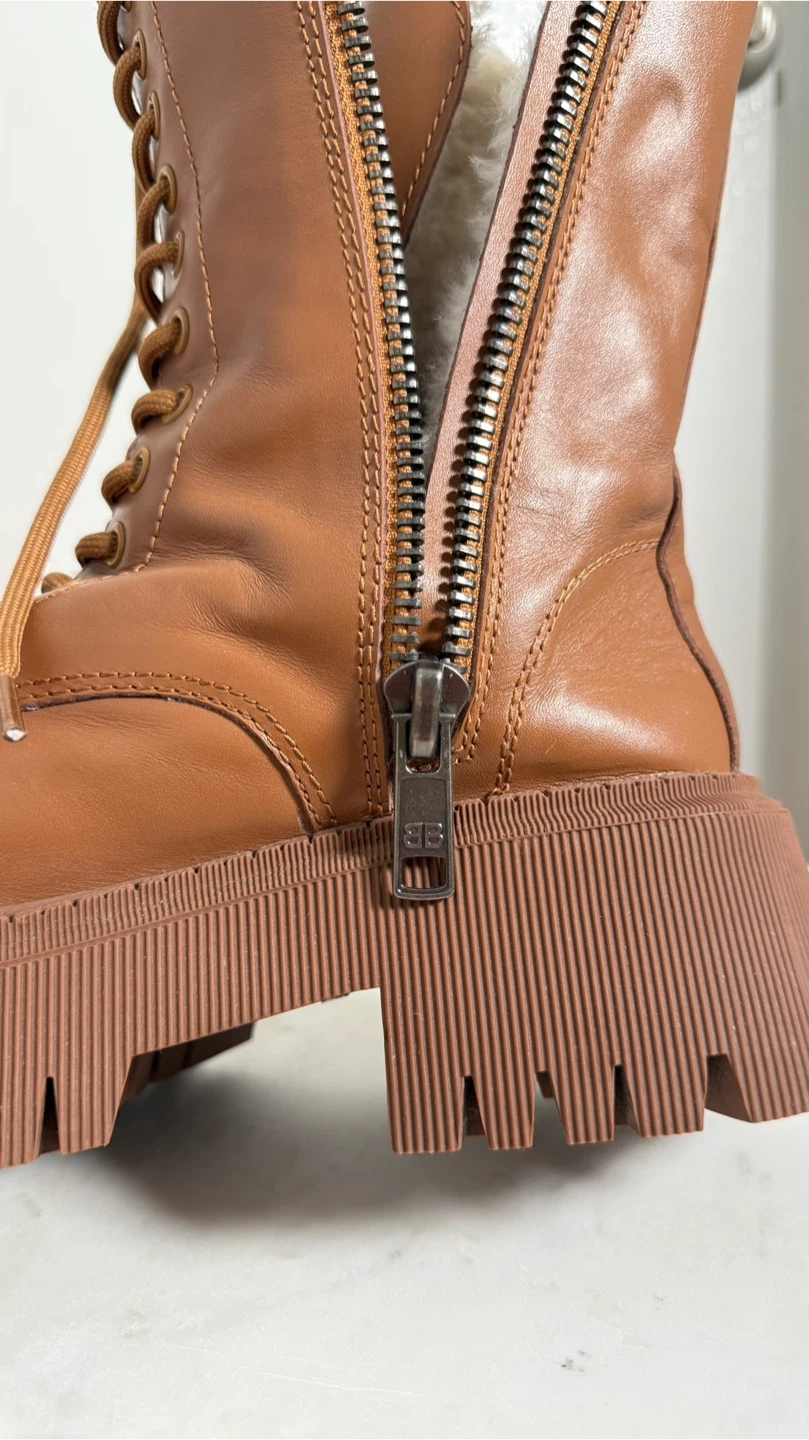 These Balenciaga boots are a stylish and practical addition to any wardrobe. Crafted from brown leather with a bold lug sole design, The boots are in great condition, very warm, and ready for their new home!