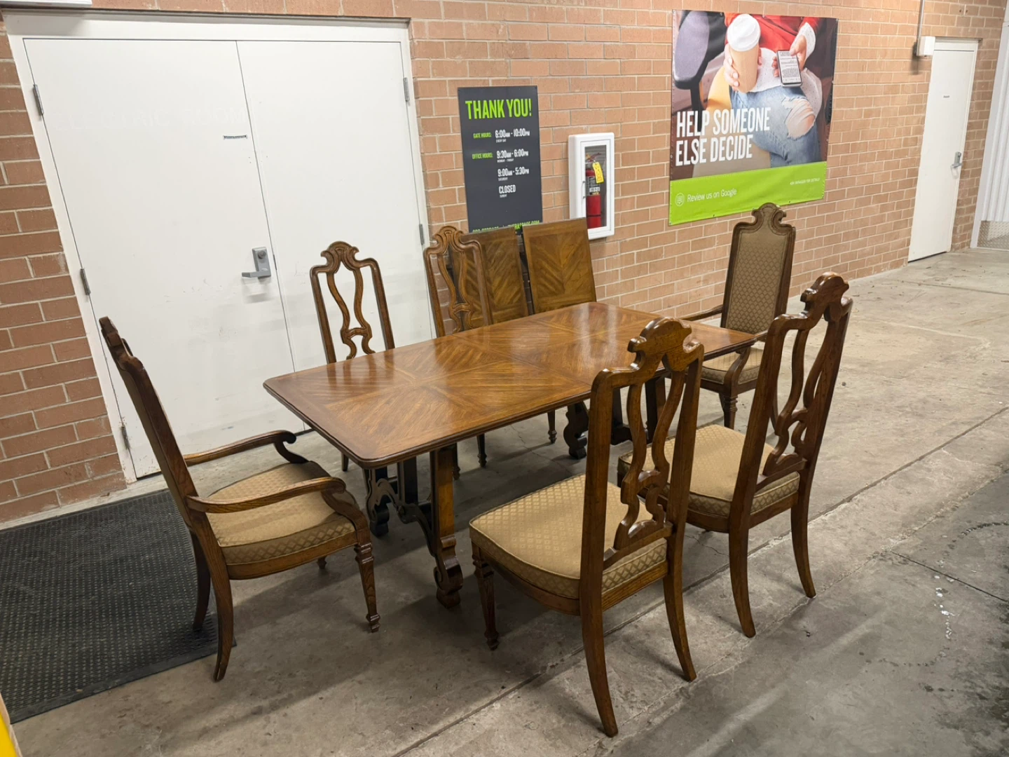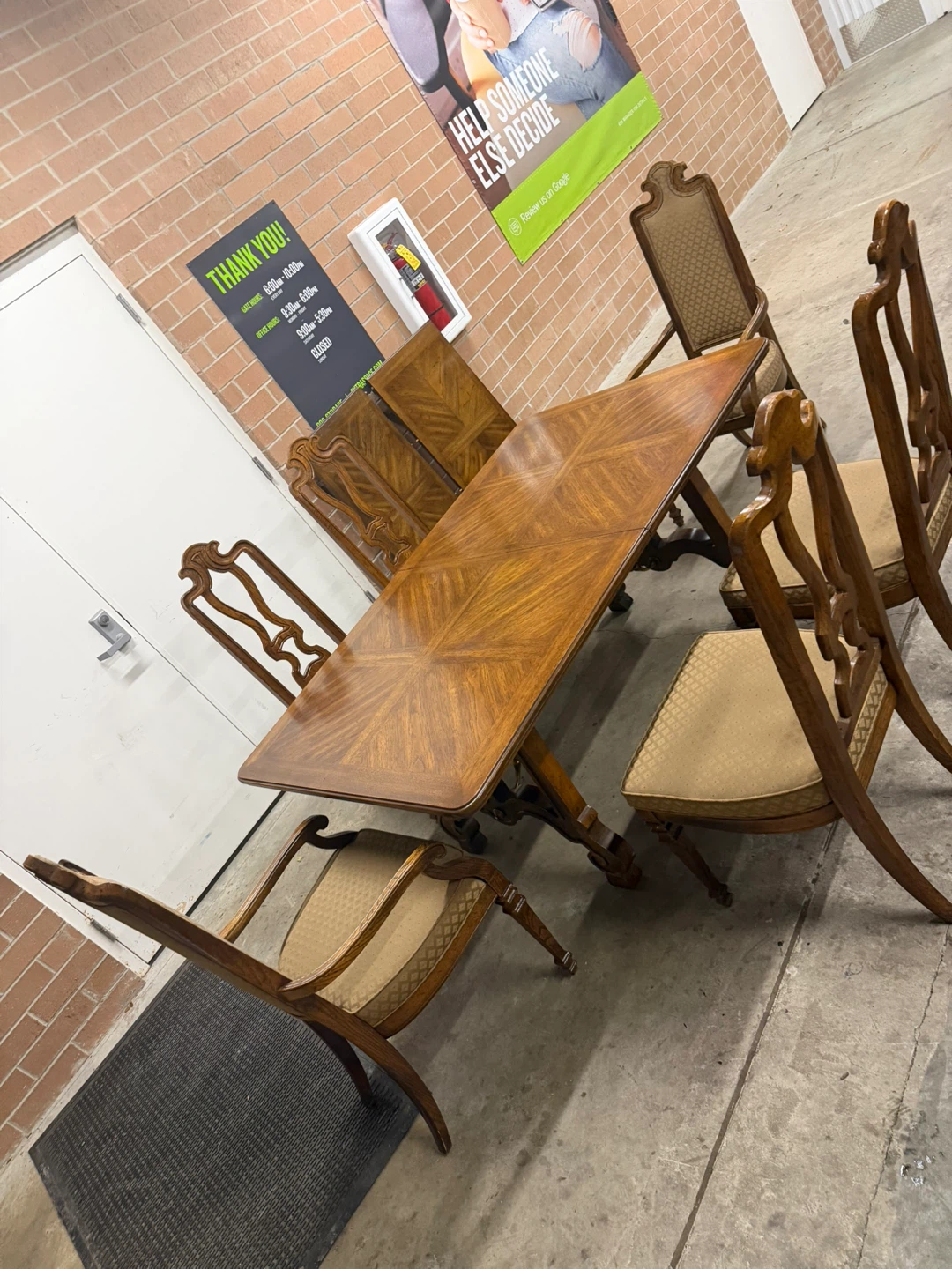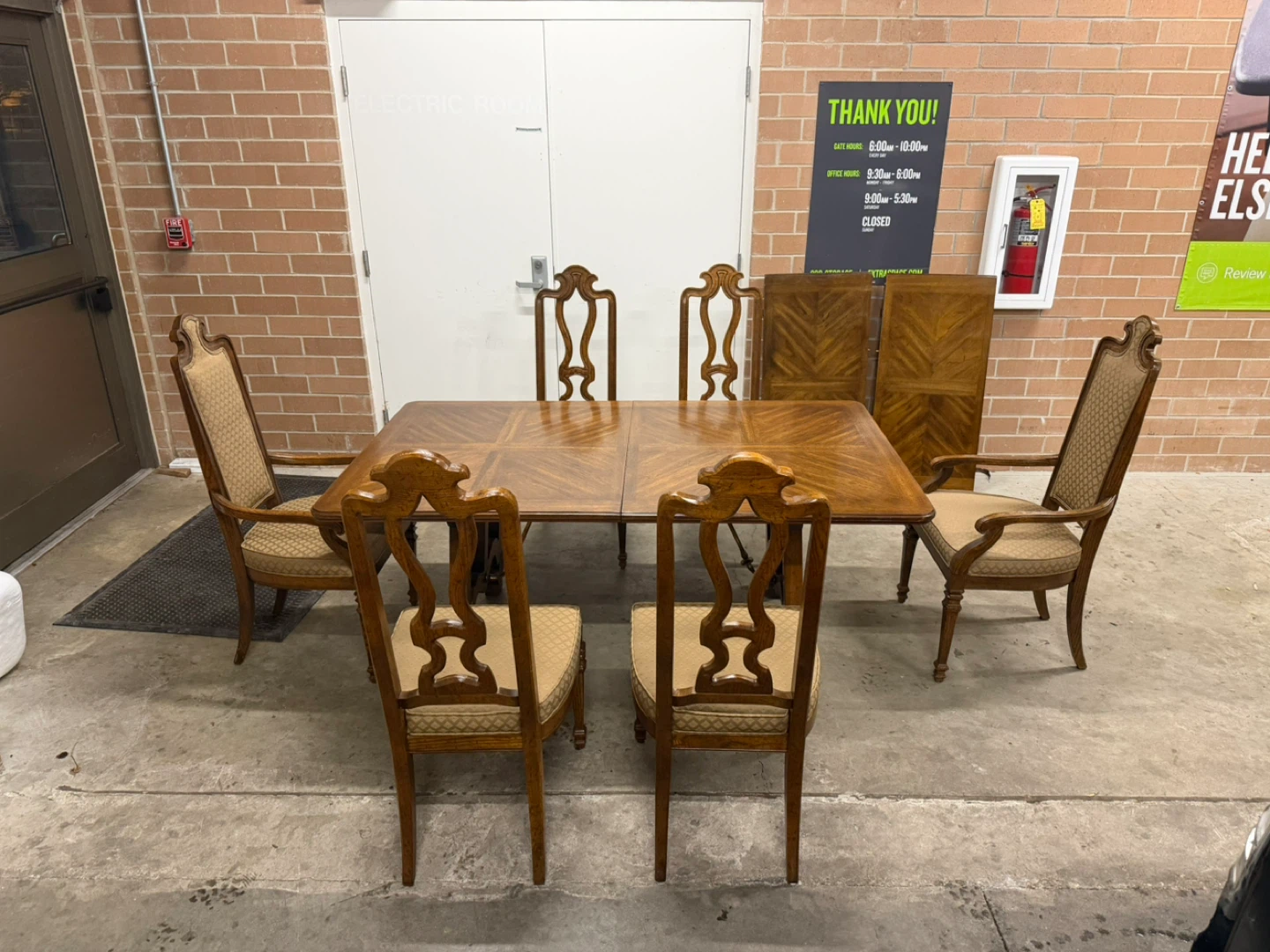 Drexel Dining Table with 6 chairs and 2 leaves.