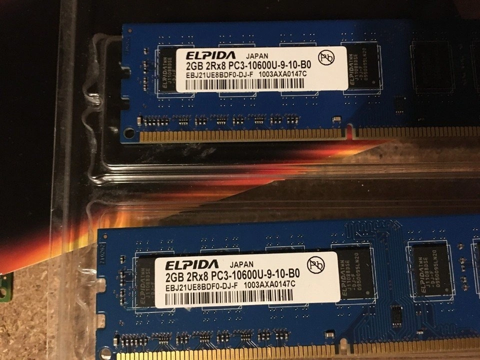 LOT OF OLD RAM STICKS ELPIDA 2X PC3-10600 2GB 2X PQ1 DDR333