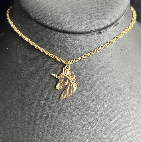 Vintage 18K Gold Plated Unicorn Necklace