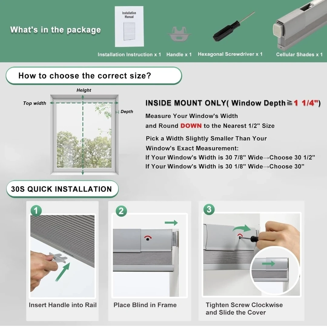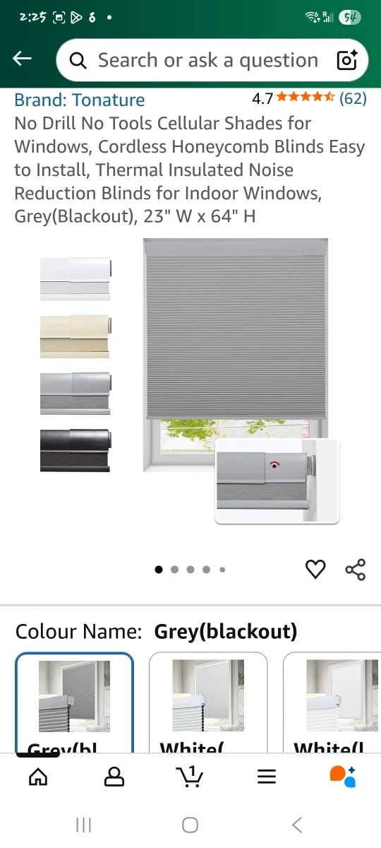 I'm selling a TONATURE cellular shade in grey blackout. It's 23 inches wide and 64 inches high. Key features: - No drill installation - Thermal insulated - Noise reduction - Easy to install Location: Taunton and Townline Check out my other listings