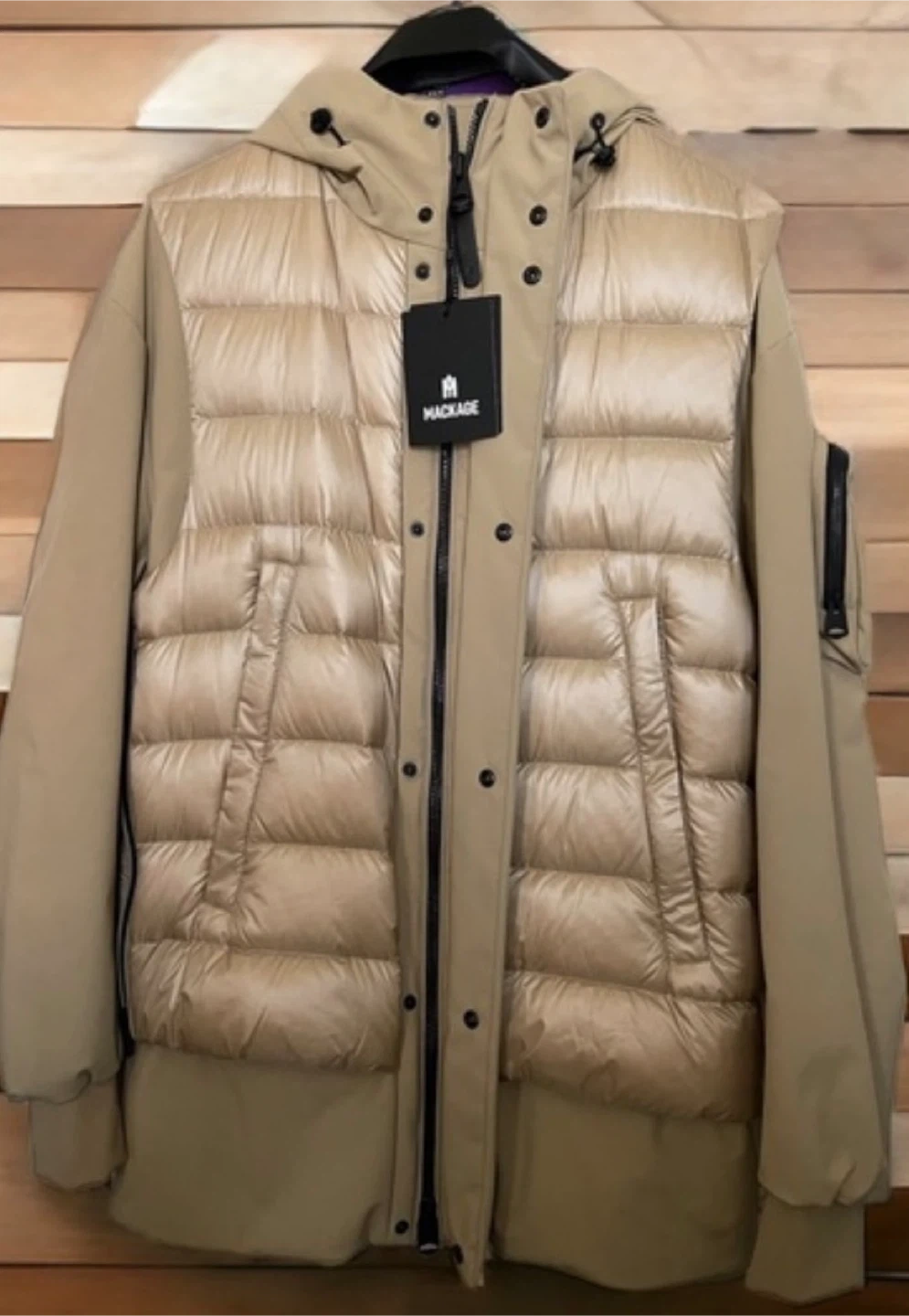 Selling a Mackage down padded jacket. It's in great condition and perfect for the colder weather! The jacket features a unique design with a combination of smooth and quilted textures. It's a stylish and functional piece to add to your wardrobe