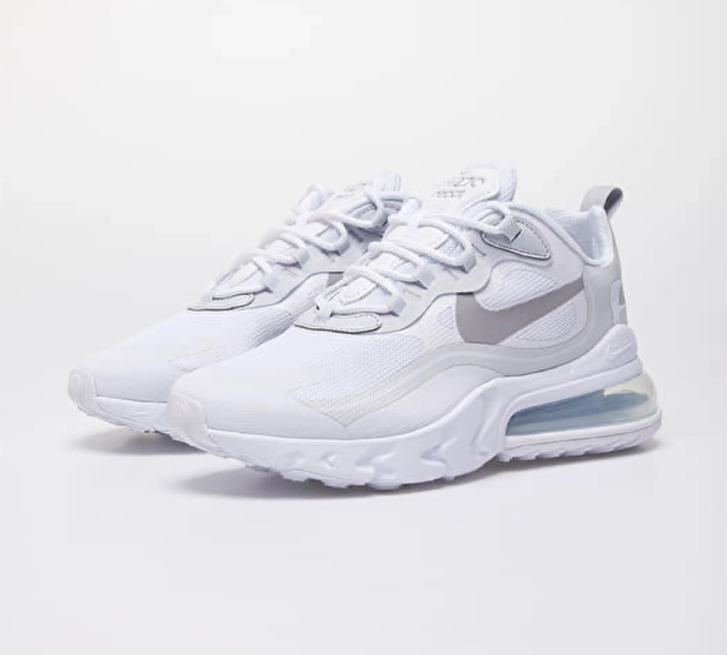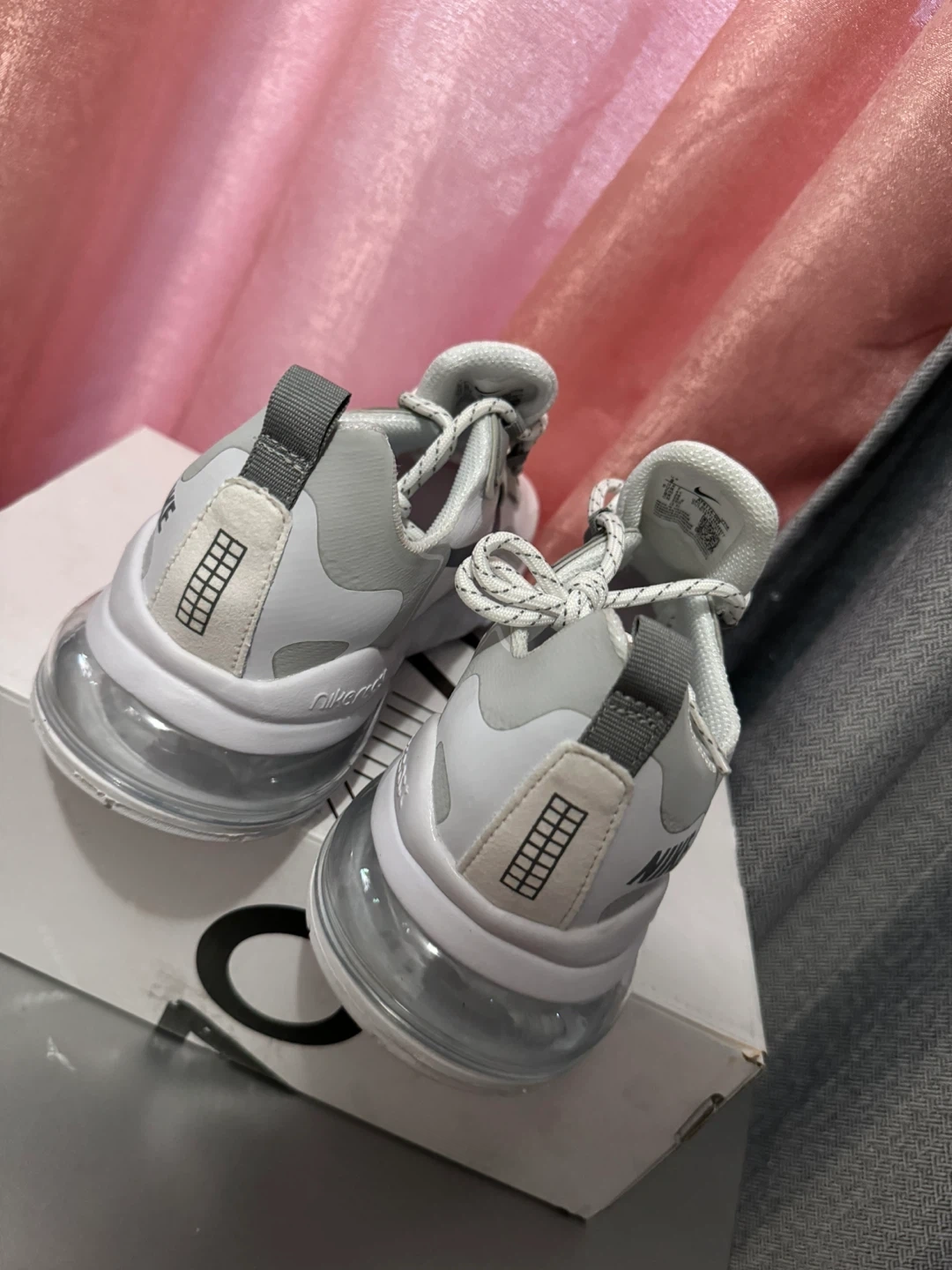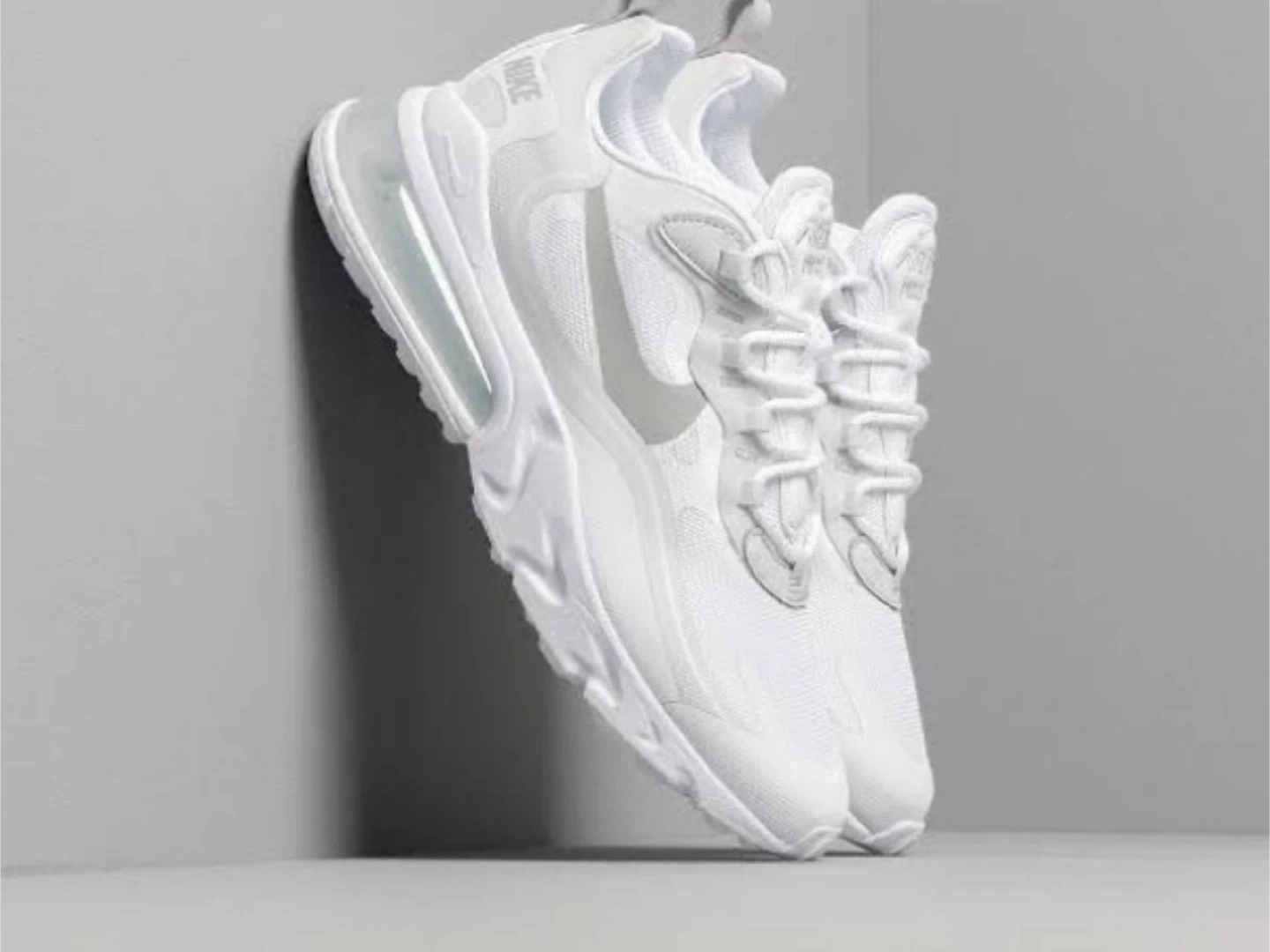 Selling a pair of Nike Air Max 270 React sneakers in white. These stylish and comfortable shoes are perfect for everyday wear or workouts. They come with the original box.