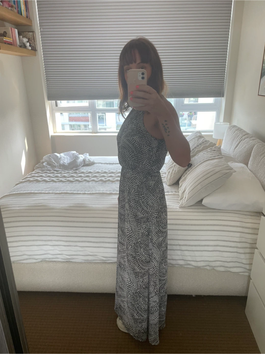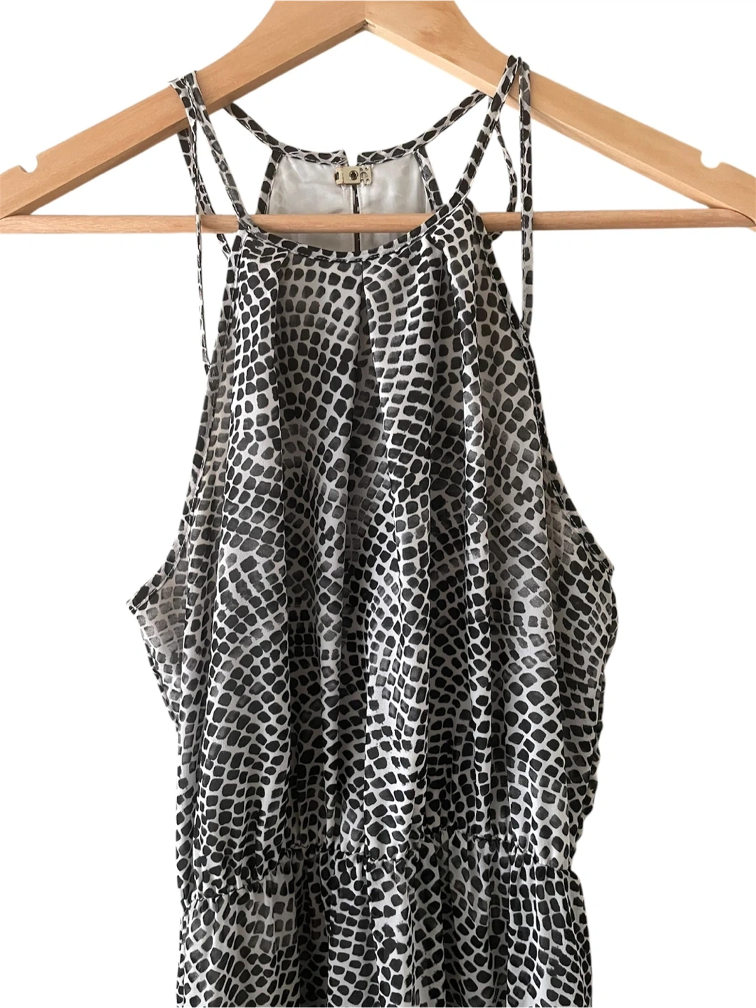 Selling a cute H&M maxi dress in size 4! It features a black and white pattern and is perfect for summer days or evenings out.