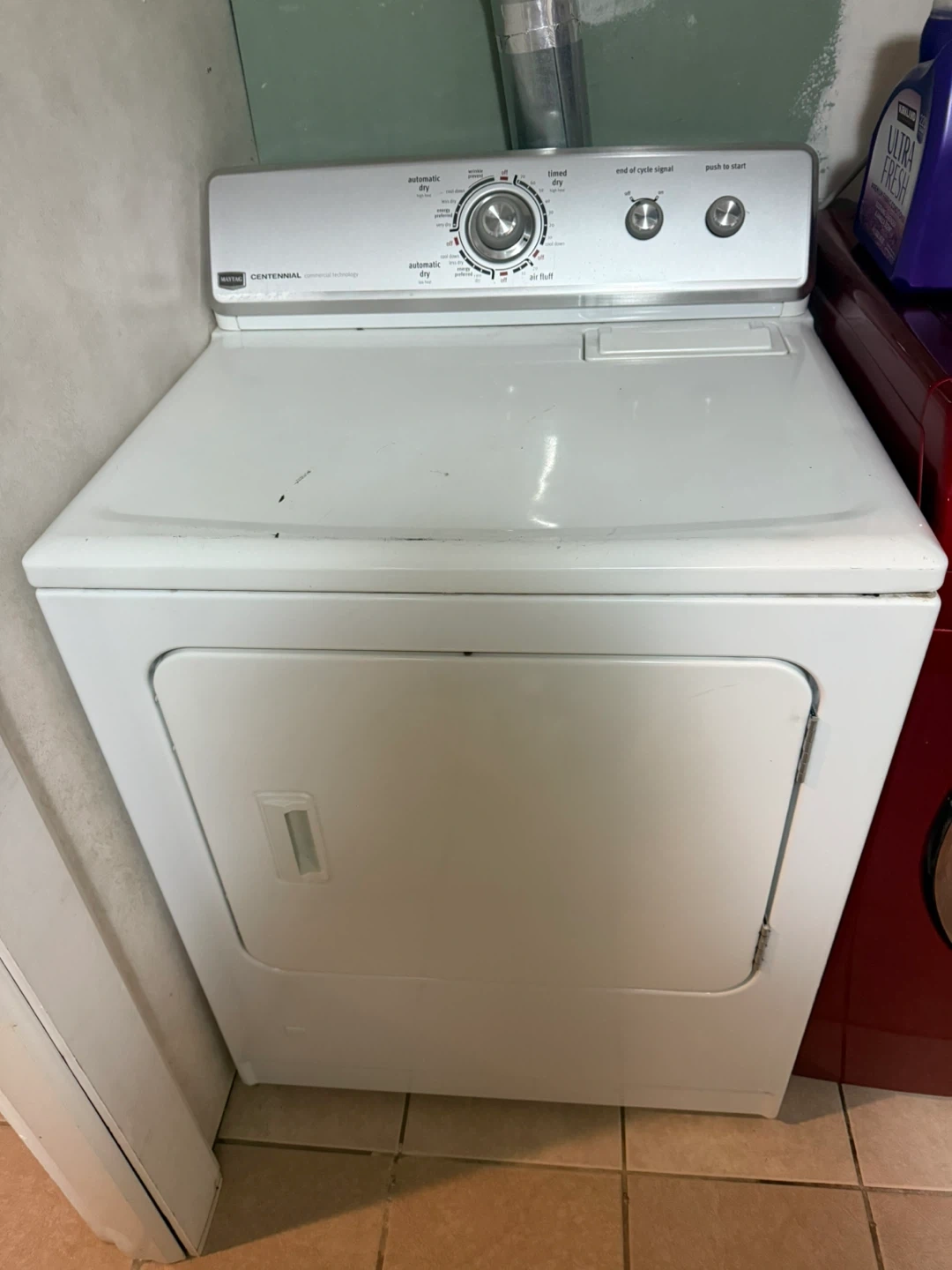 Selling a Maytag dryer in good working condition. Its very loud but drys perfectly. Was told a spring is lose. Can send video to hear noise. Currently connected so you can try before you buy. $100 OBO no delivery. Needs carried up a flight of stairs. It's a reliable appliance ready to help with your laundry needs.
