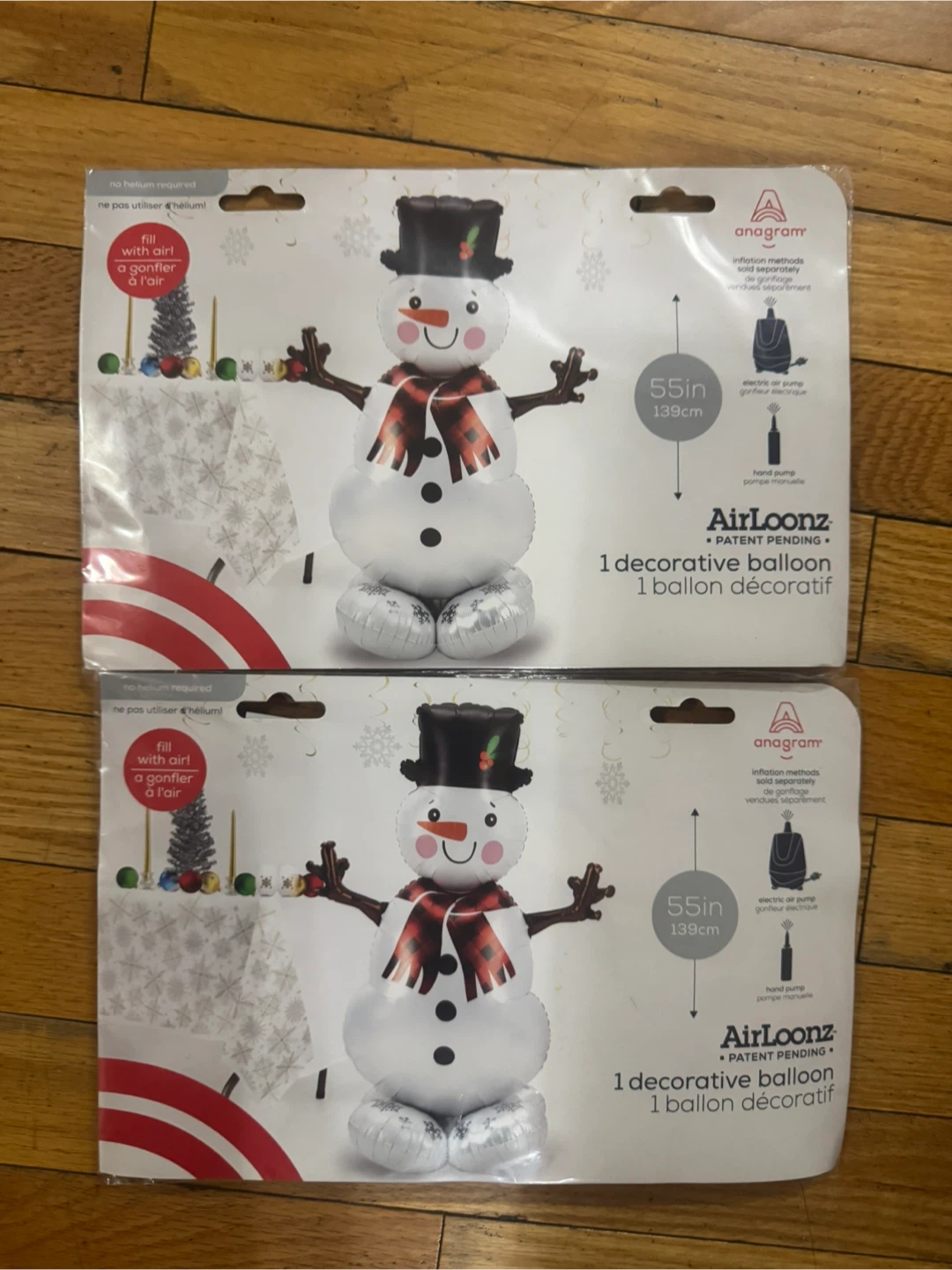 I'm selling two new Anagram AirLoonz decorative balloons featuring a cute snowman design! These balloons are 55 inches (139cm) tall when inflated and are perfect for holiday decorations