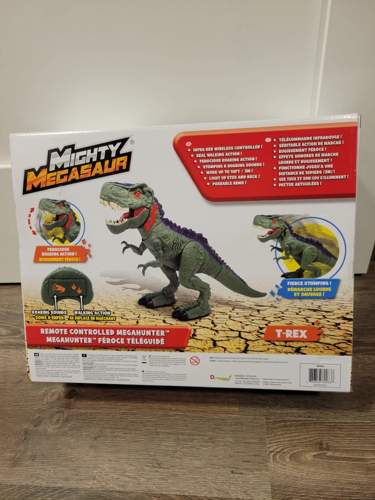 Selling a Mighty Megasaur Remote Controlled Megahunter T-Rex! It's brand new but needs new batteries. Open to offers. Check out my other listings for other toys and fun things. Thanks for looking!