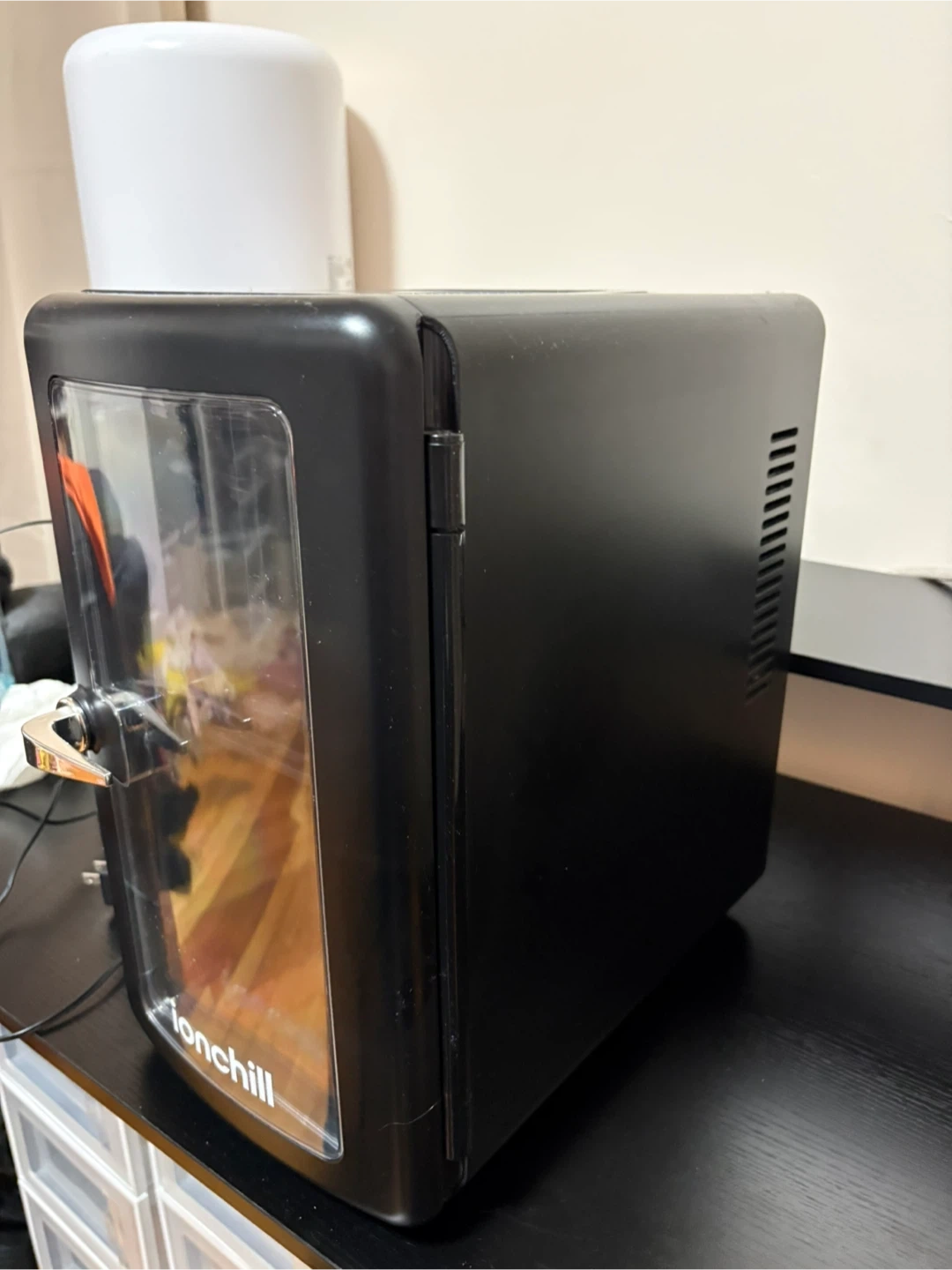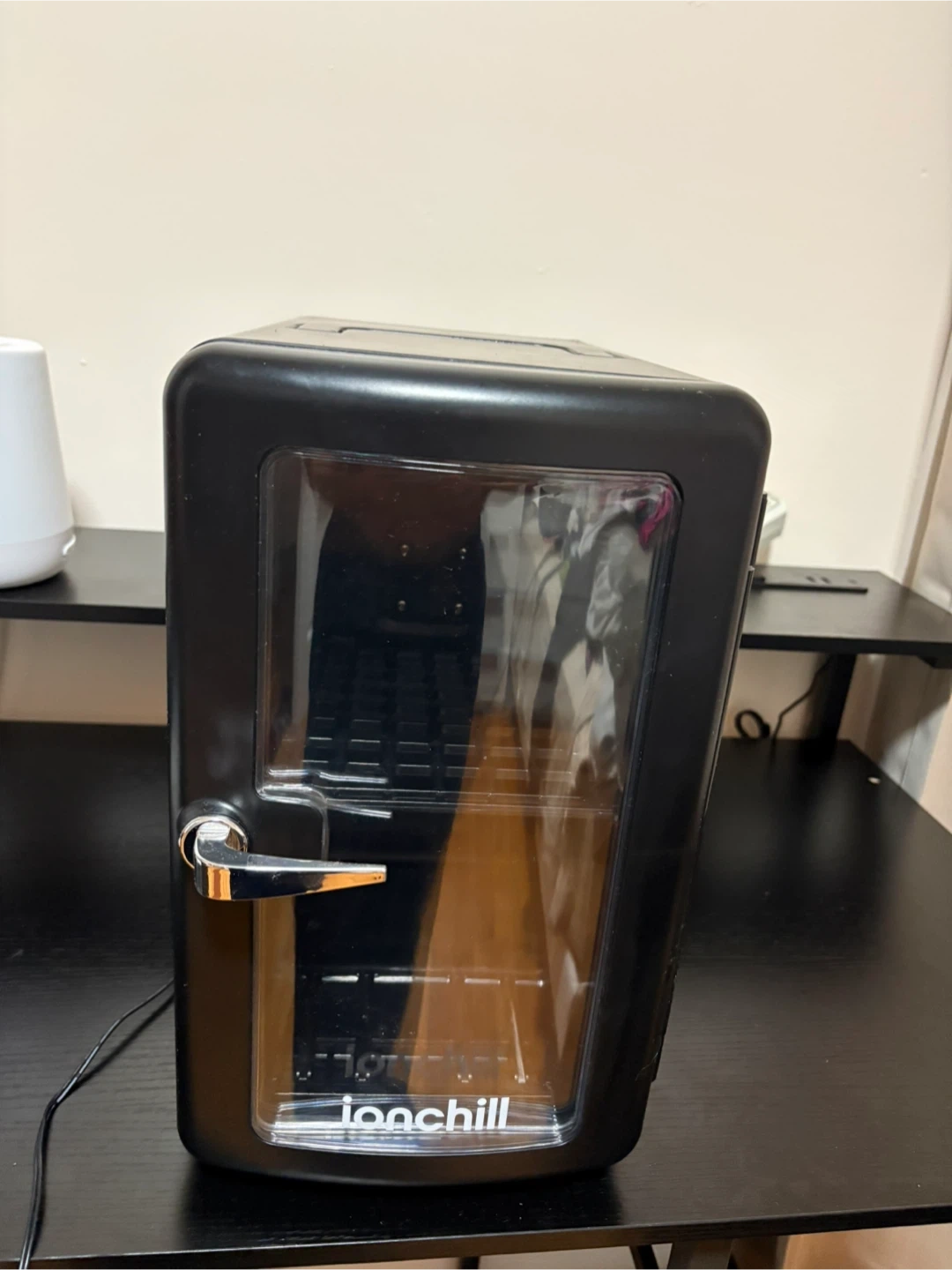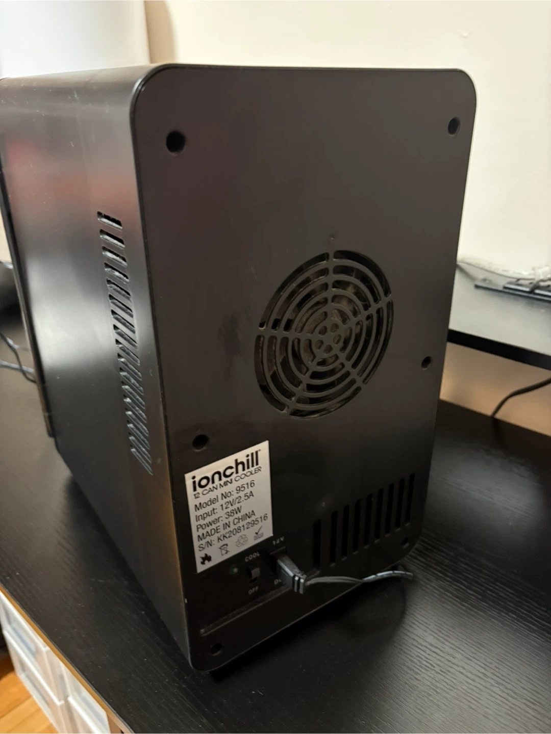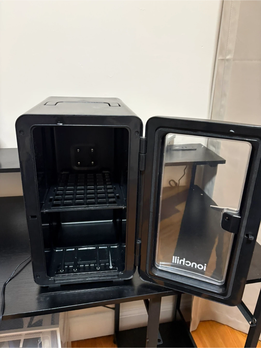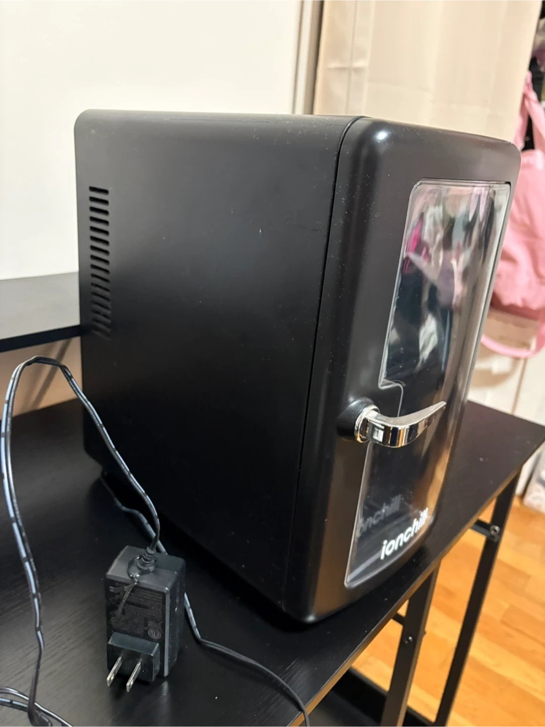Selling a black Ionchill mini fridge. It's in great condition and ready to keep your drinks and snacks cool! Comes with the power adapter , was only used like 3 times