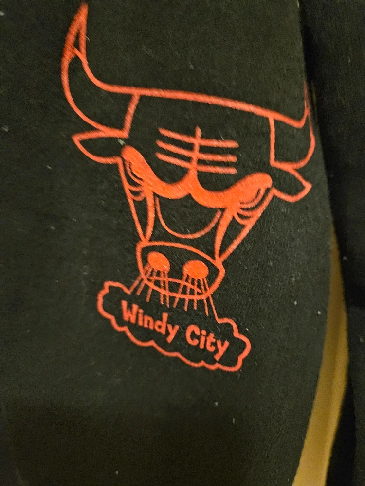 Selling a Chicago Bulls NBA Classics sweatshirt. It's a size large and in good condition. The sweatshirt is black with red lettering and graphics.
