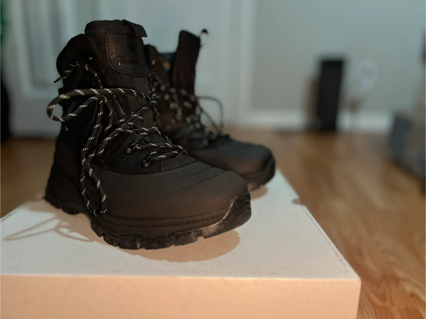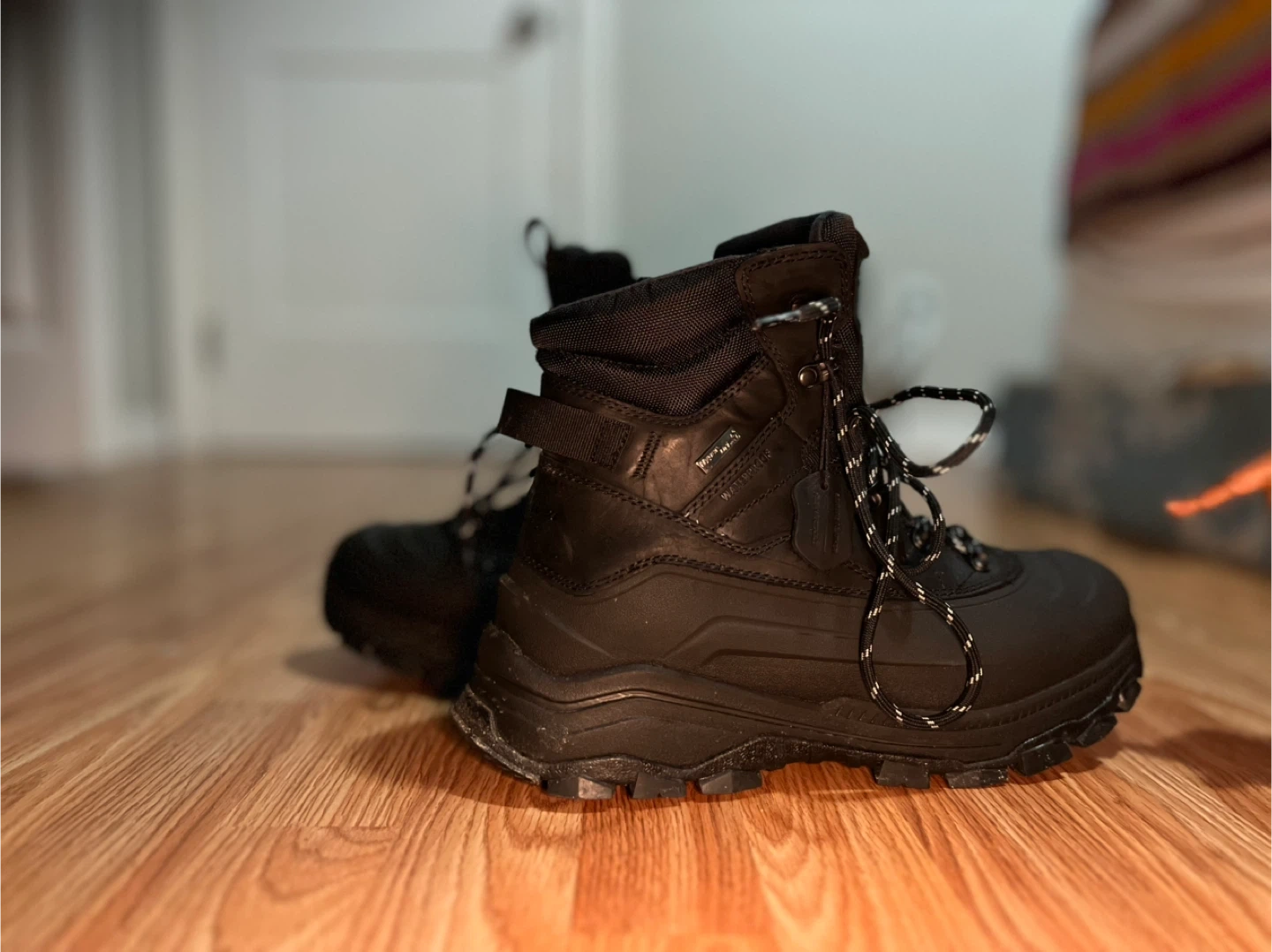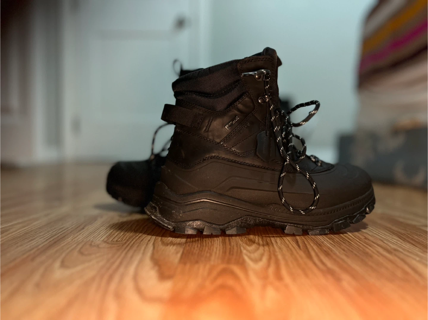 These are Columbia Men's Fairbanks Rover winter boots in black. They appear to be in good condition and ready for the cold weather! They have a waterproof design, perfect for snow and slush