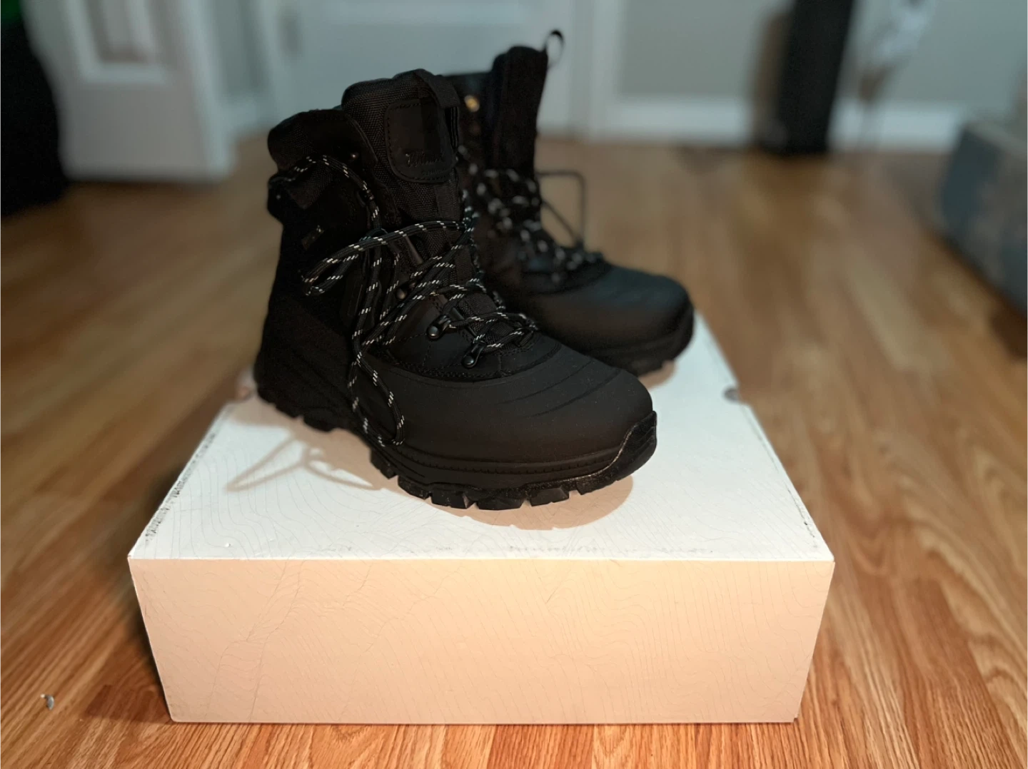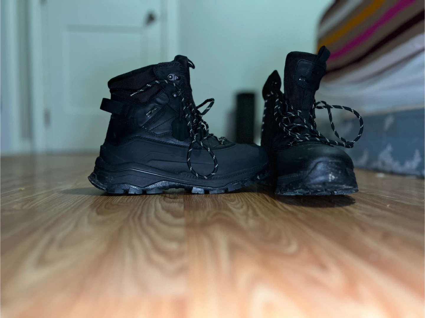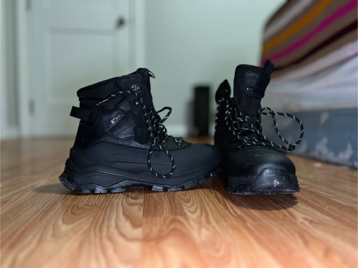 These are Columbia Men's Fairbanks Rover winter boots in black. They appear to be in good condition and ready for the cold weather! They have a waterproof design, perfect for snow and slush