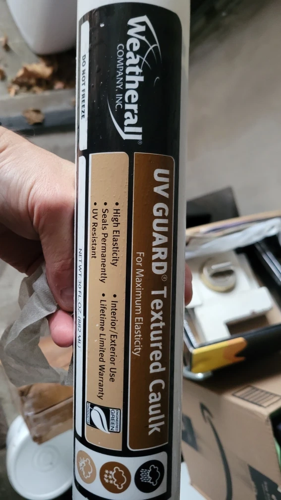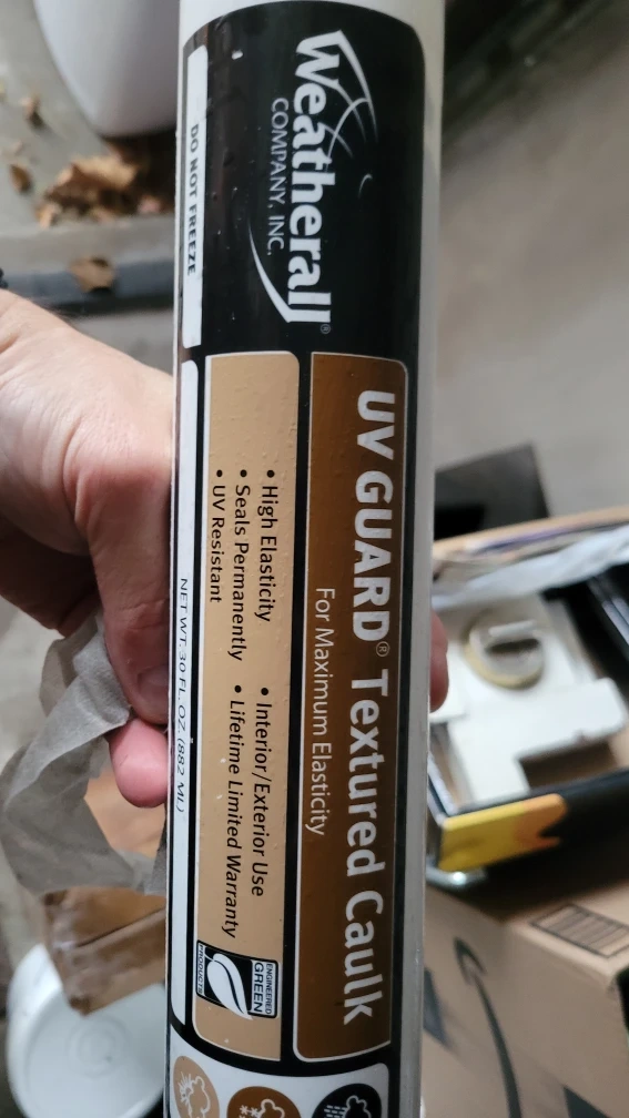 Offering a box of 10 tubes of Weatherall UV Guard Textured Caulk. It features high elasticity, seals permanently, and is UV resistant. It's suitable for interior or exterior use and comes with a lifetime limited warranty.
