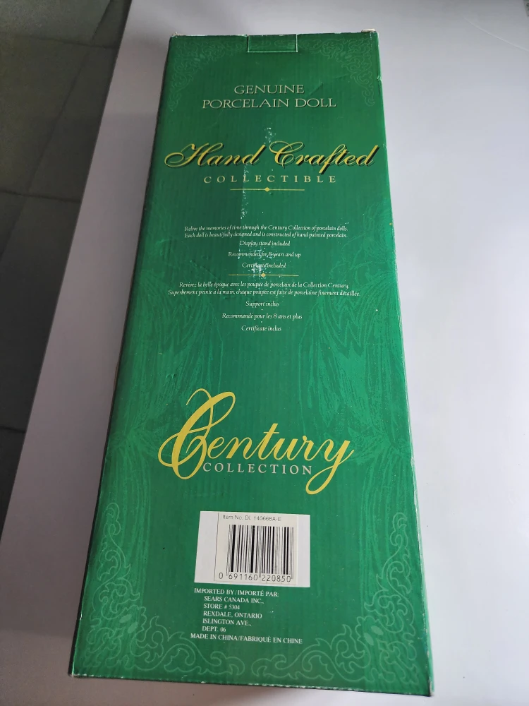 Genuine porcelain doll from the Century Collection, hand-crafted and collectible! Recommended for ages 14 years and up. Comes with a display stand and certificate