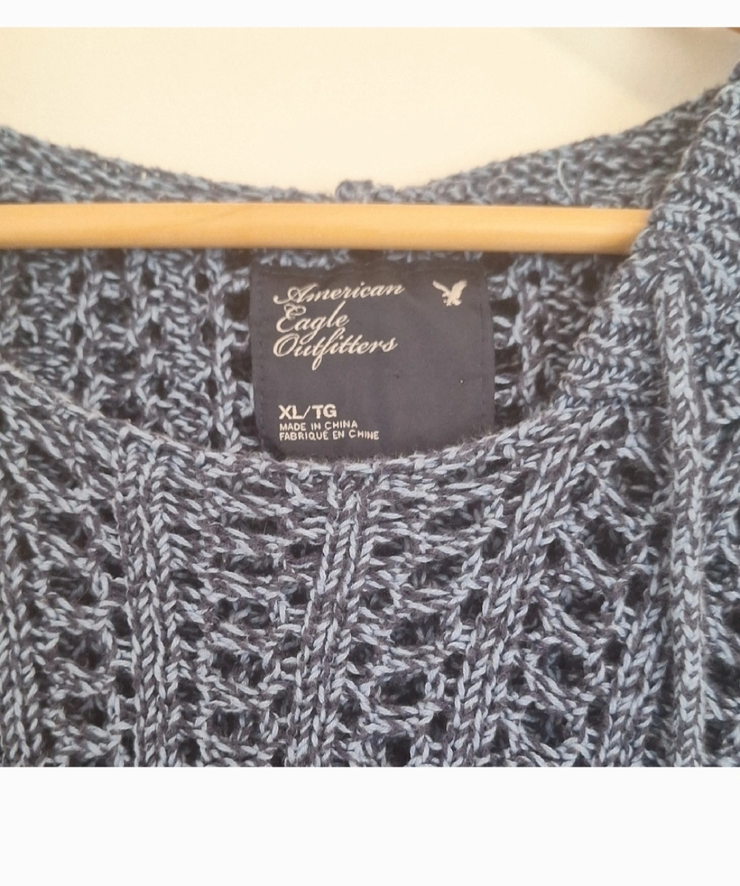Cozy American Eagle Outfitters knit hoodie in size XL. It's a lovely blue colour and features a unique knit pattern. Perfect for layering or wearing on its own!