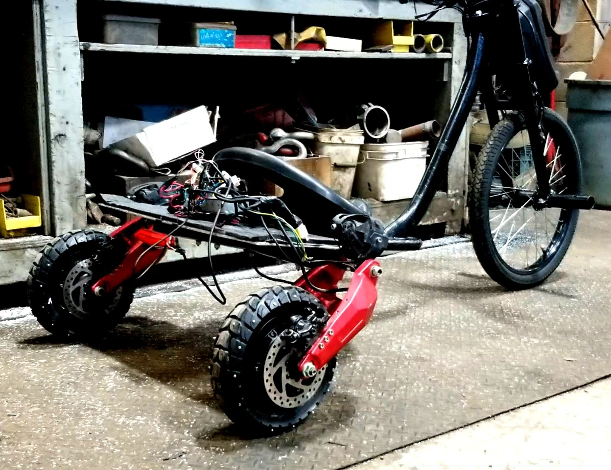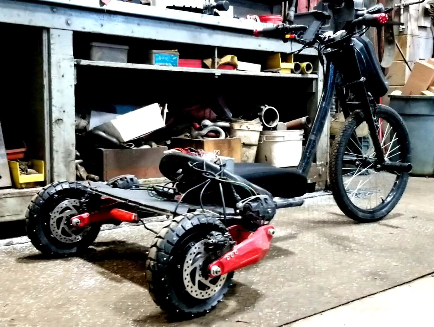 One-of-a-kind custom build. Started as a Cheetah electric scooter and fully converted into a three-wheel Scorpion drift trike using a Razor pedal-assist drift trike frame. Extremely fast and fully loaded with upgrades.