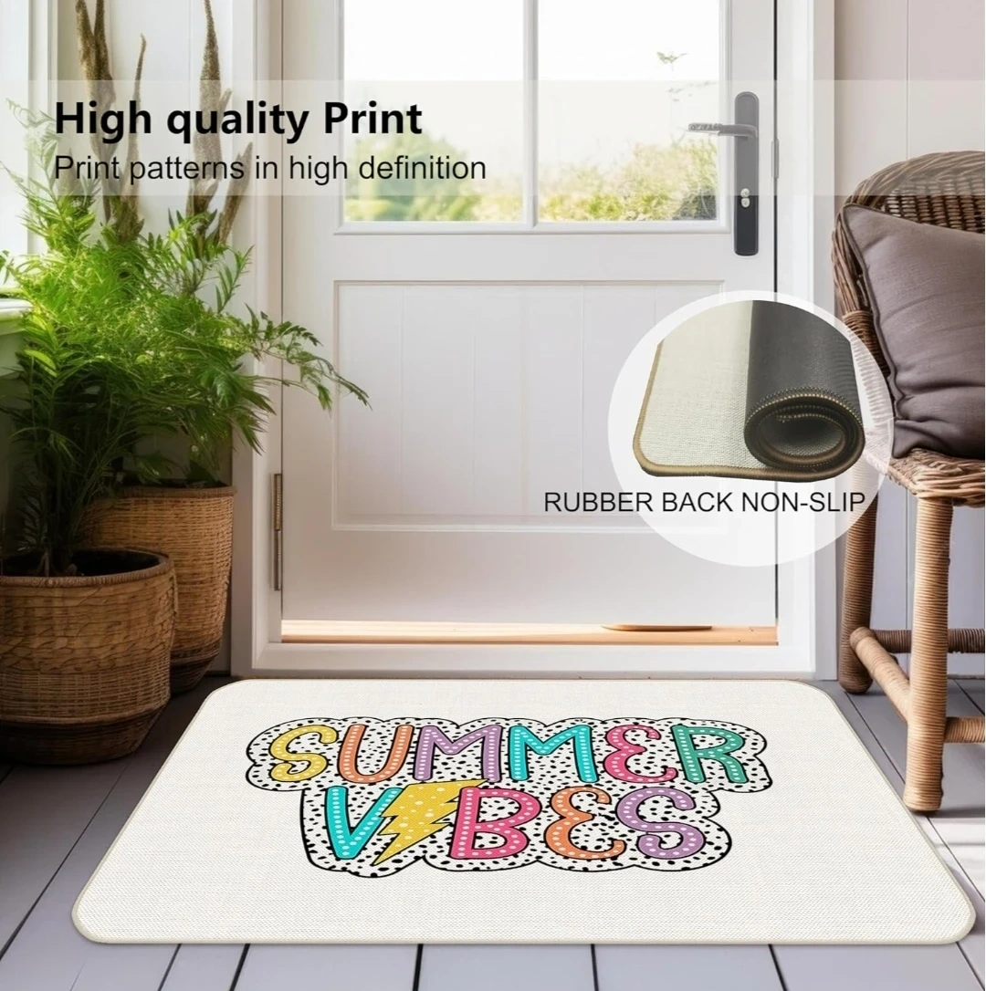 Summer Vibes Door Mat – 30” x 17” – Anti-Slip Rubber Backing