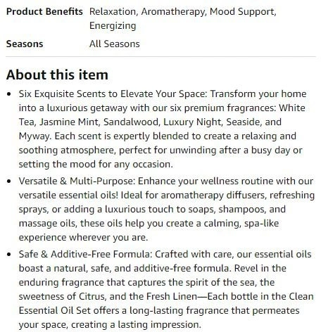 NEW~ Hotel Fragrance Oils Set For Diffusers, 6 Scents (6 PK)