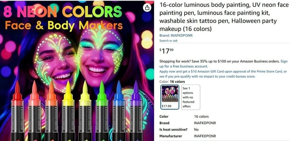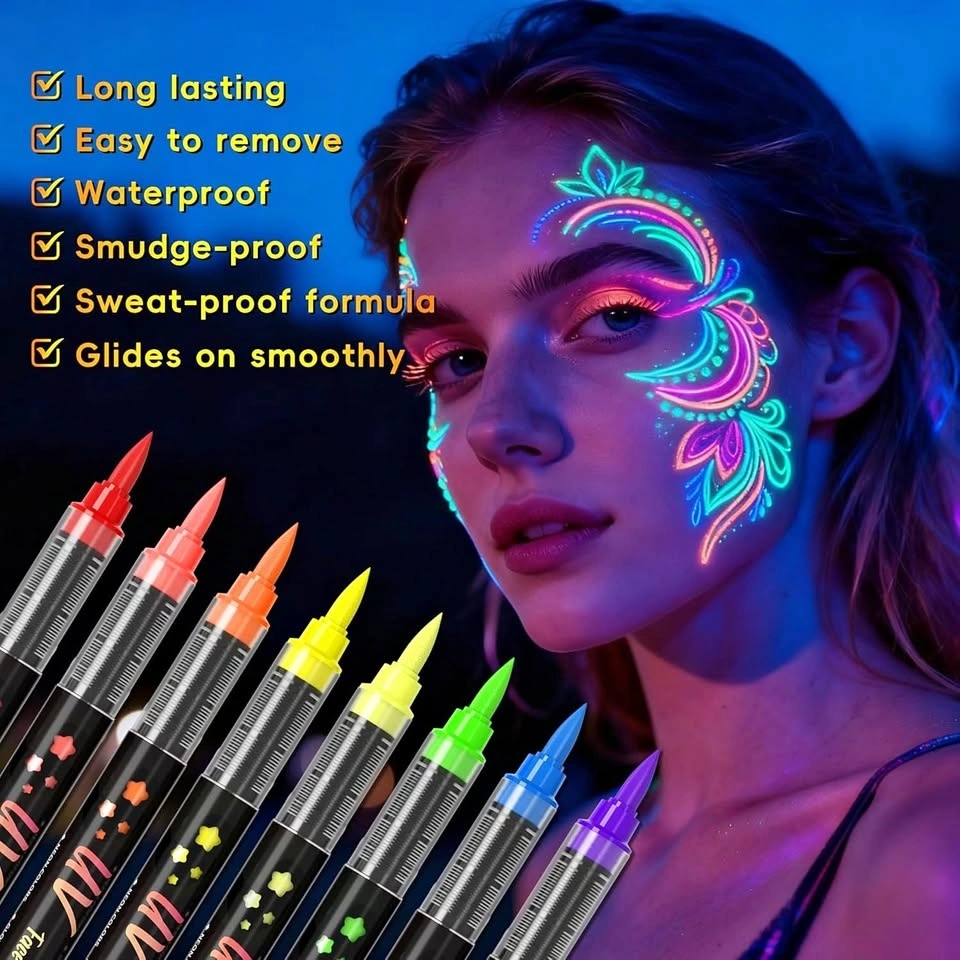 NEW~ UV Neon Face & Body Paint Pens, Washable (8 PK)