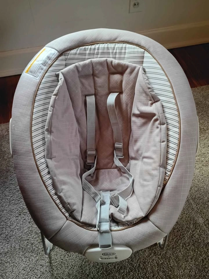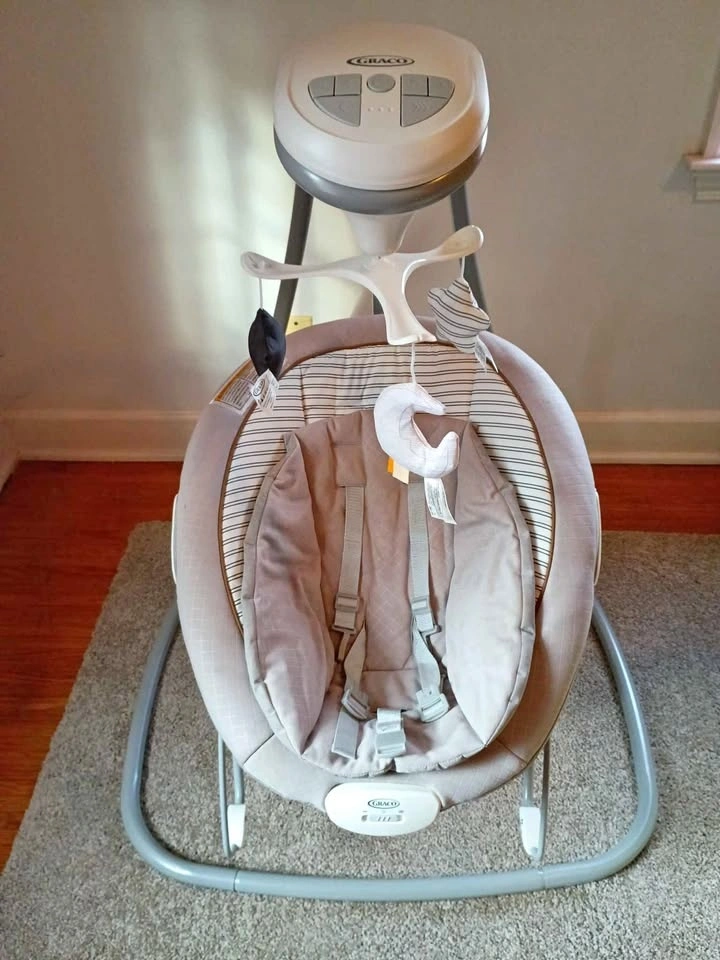 Graco baby swing. Plays music and has additional white noise features. Bouncer has a battery operated vibration mode and can be used separately. Paid $160 on Amazon. Smoke-free home.