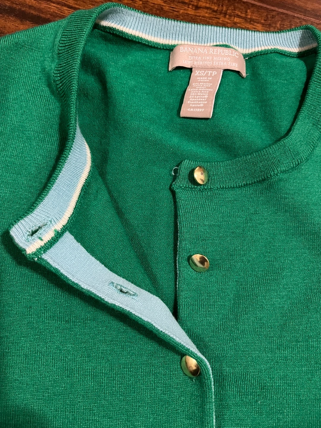 Banana Republic Extra Fine Merino wool women’s extra small cardigan in Brilliant Jade green. Gold buttons and pale blue inner placket. Excellent condition. Smoke free home.