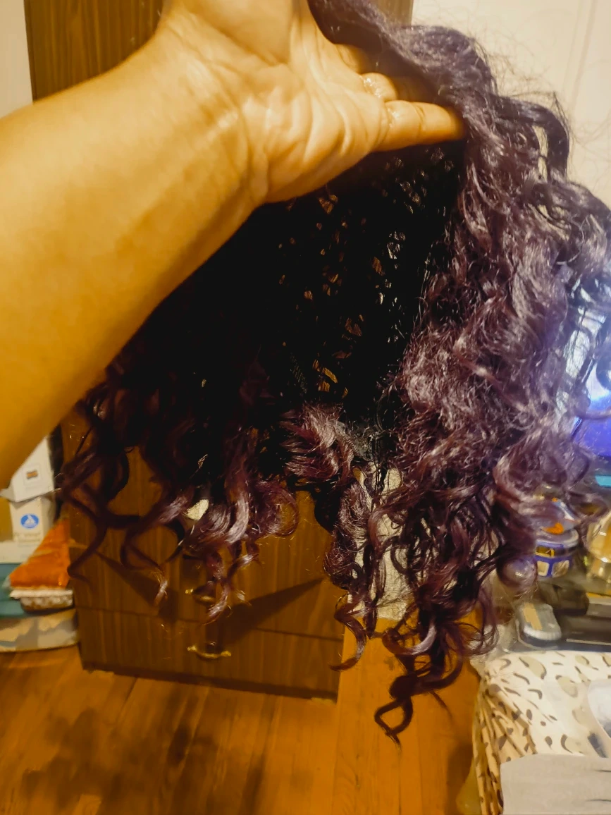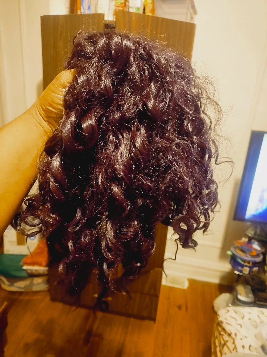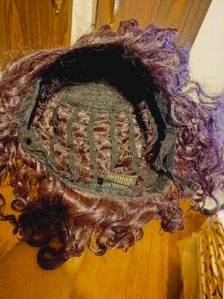 Selling a Motown Tress wig! It's a beautiful wig with a curly style. The color is a lovely shade of purple. It's in great condition and ready for a new look!