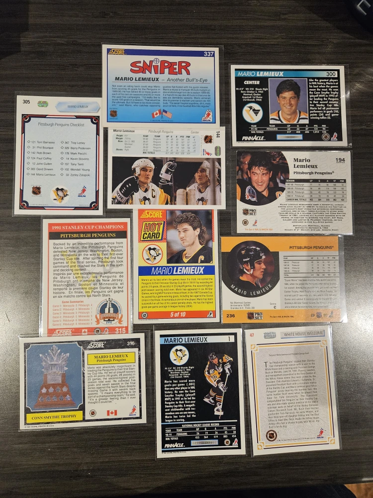 Selling a collection of Mario Lemieux hockey cards! These cards feature Lemieux during his time with the Pittsburgh Penguins. A great addition for any hockey fan or collector looking to own a piece of NHL history!