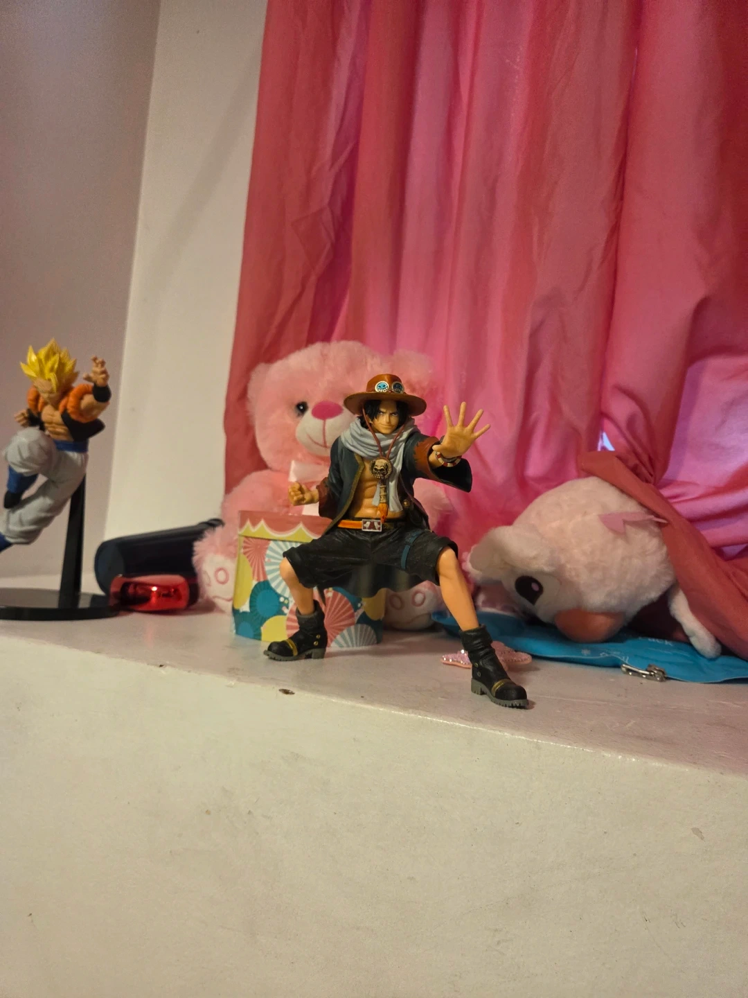 This is an action figure of Portgas D. Ace from One Piece. It's highly detailed with his signature hat and outfit. The figure is made of PVC and stands at approximately 6 inches tall.