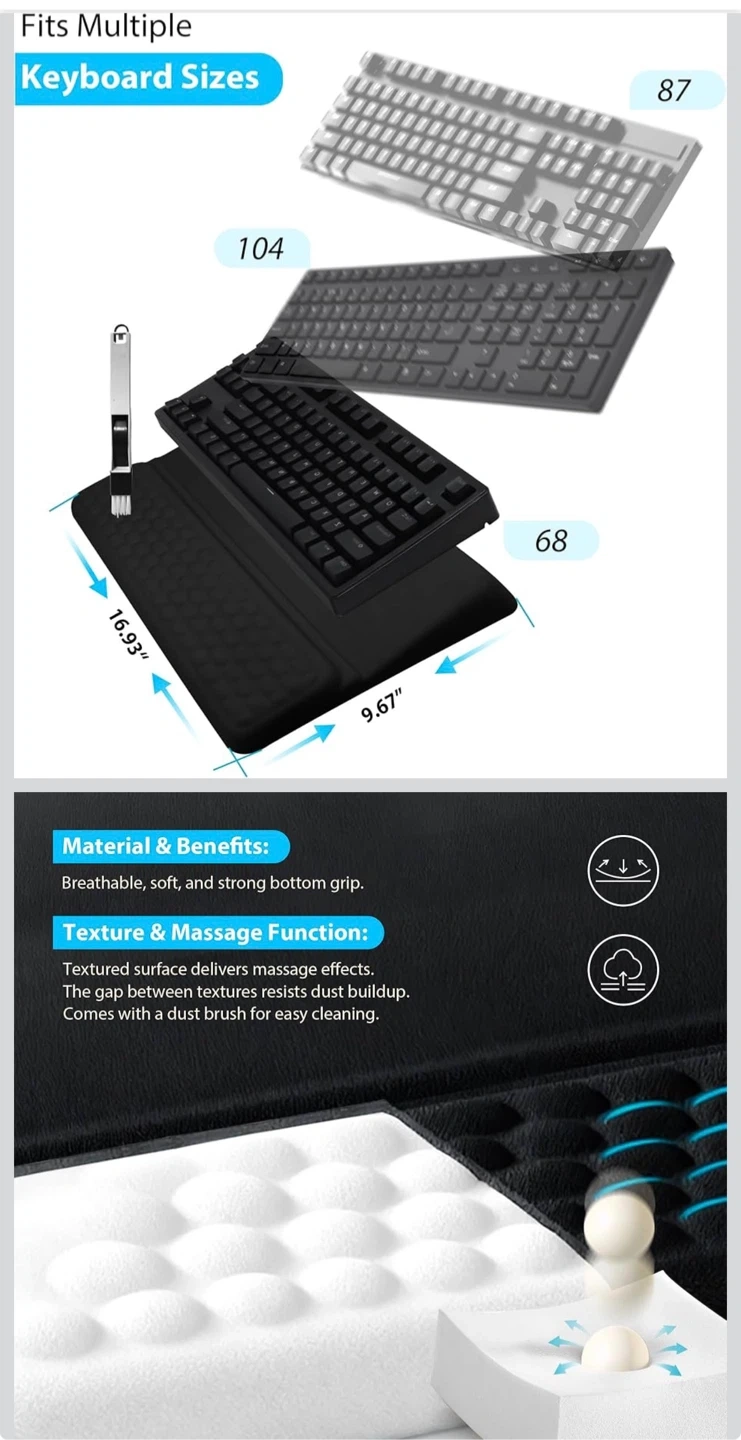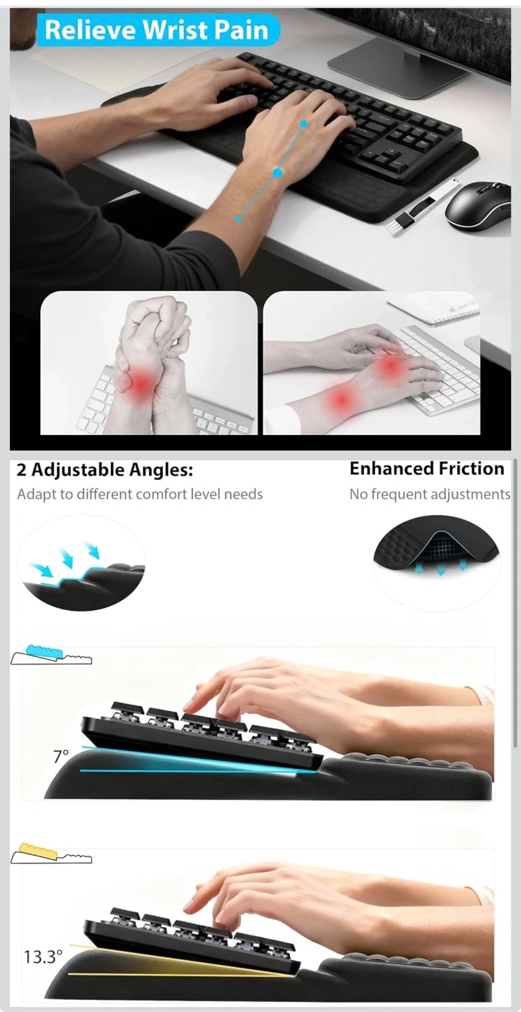 Wrist Rest for Keyboard, Ergonomic Keyboard Stand with Wrist Rest, Soft Memory Foam Wrist pad with Non-Slip Base & Dust Brush, Comfort for Office, Work, Gaming- Black