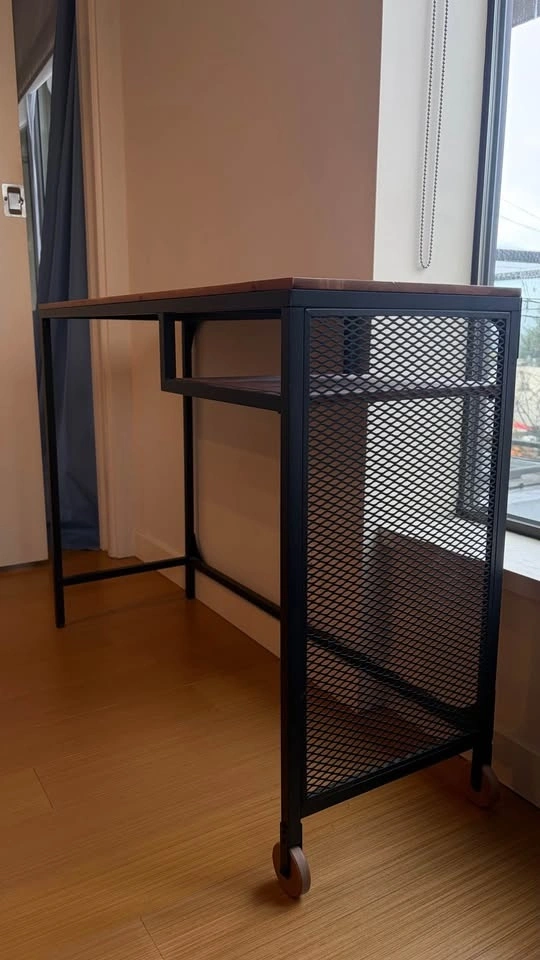 With this rustic metal and solid wood desk you get a flexible and functional workspace which fits in a small space. Wood is a natural living material, and variations in the grain, color and texture makes each piece of wood furniture unique.